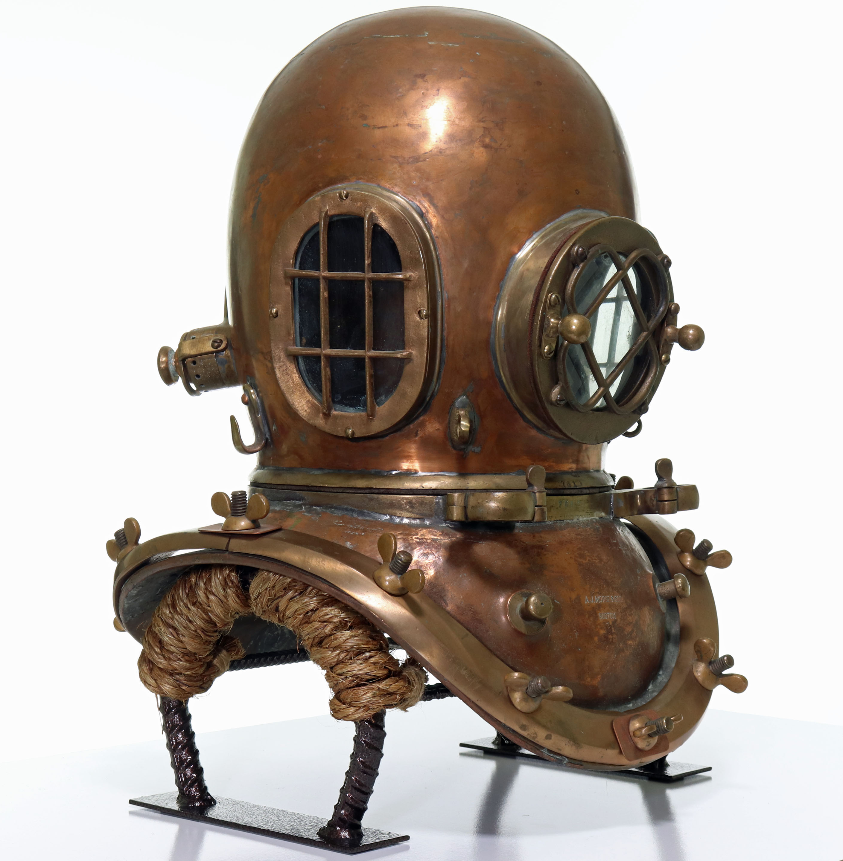 All diving helmets in this auction will be accompanied by a certificate of authenticity from Nations Attic. The certificate will have a unique number that will match the number on a tamperproof hologram decal placed inside the helmet. This information will be kept on permanent file at Nations Attic and help ensure the provenance of the helmet and authenticity.