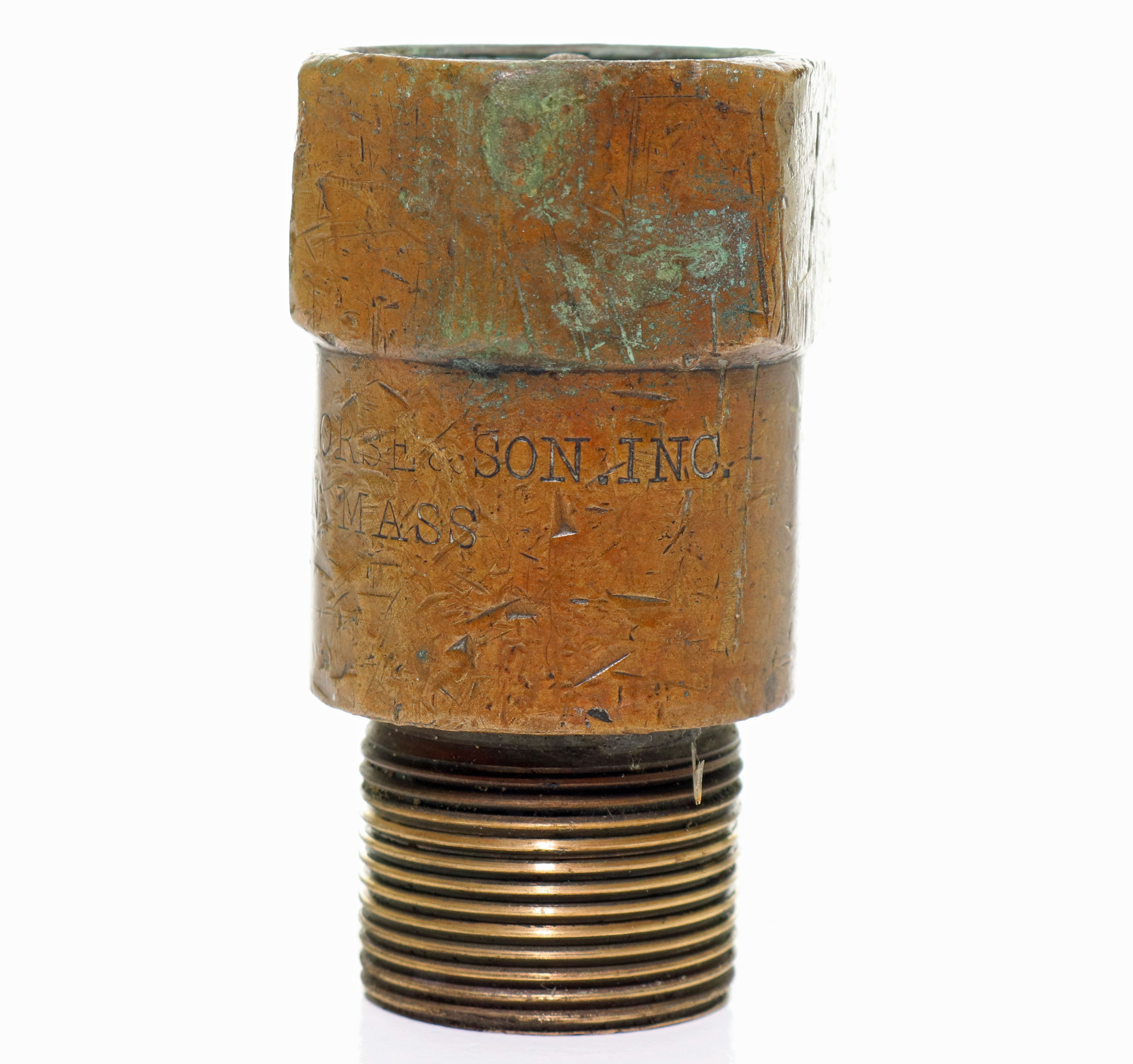 This is an original early 20th-century A.J. Morse & Son Inc. non-return valve. These were mandatory equipment on most helmets, including the Mark V. They were threaded to the air fitting and prevented a sudden loss of air in the helmet if the air line was cut. This valve features a company stamp. If your AJ Morse helmet is missing one of these, it’s a must-have piece!