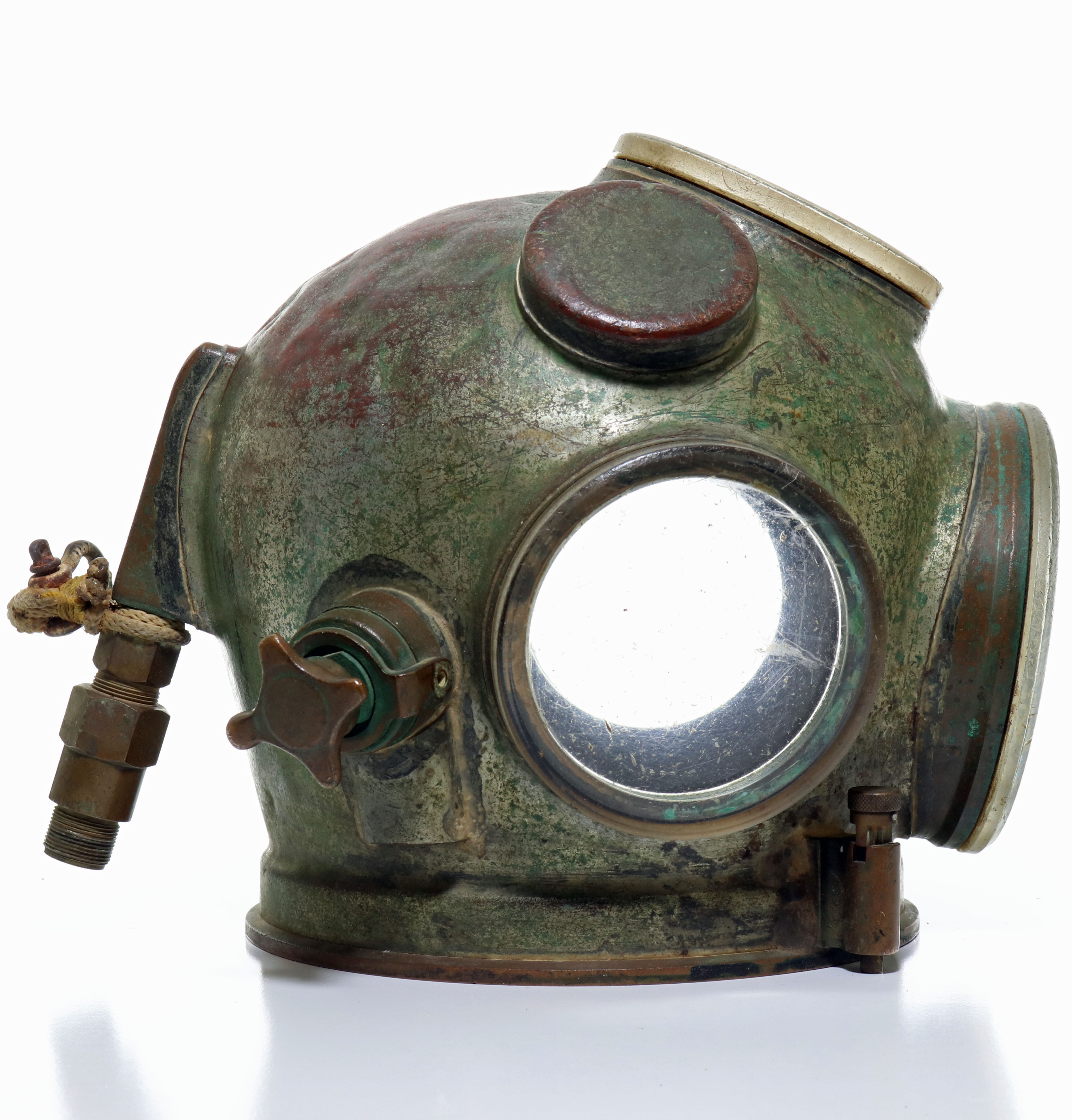 All diving helmets in this auction will be accompanied by a certificate of authenticity from Nations Attic. The certificate will have a unique number that will match the number on a tamperproof hologram decal placed inside the helmet. This information will be kept on permanent file at Nations Attic and help ensure the provenance of the helmet and authenticity.