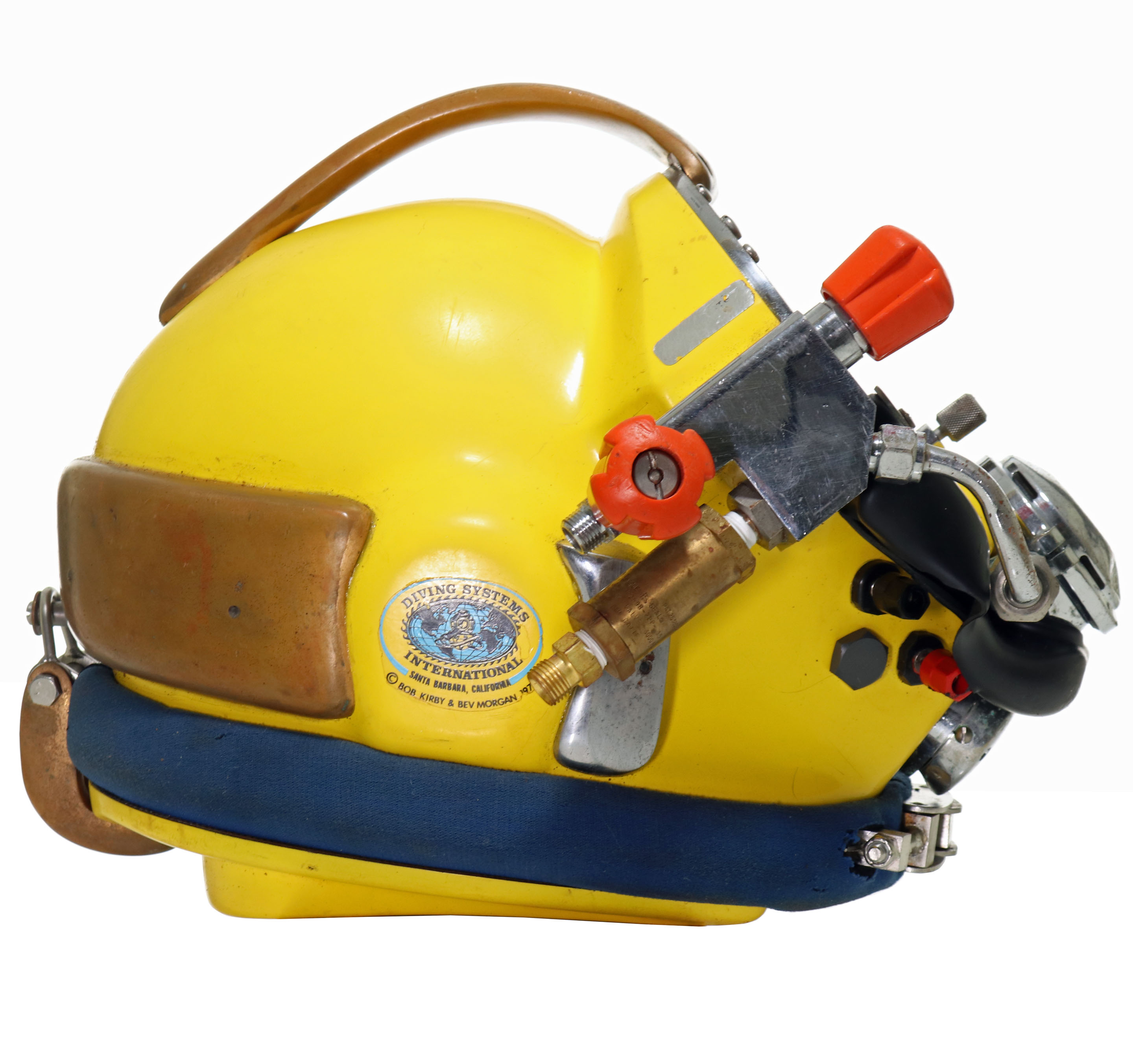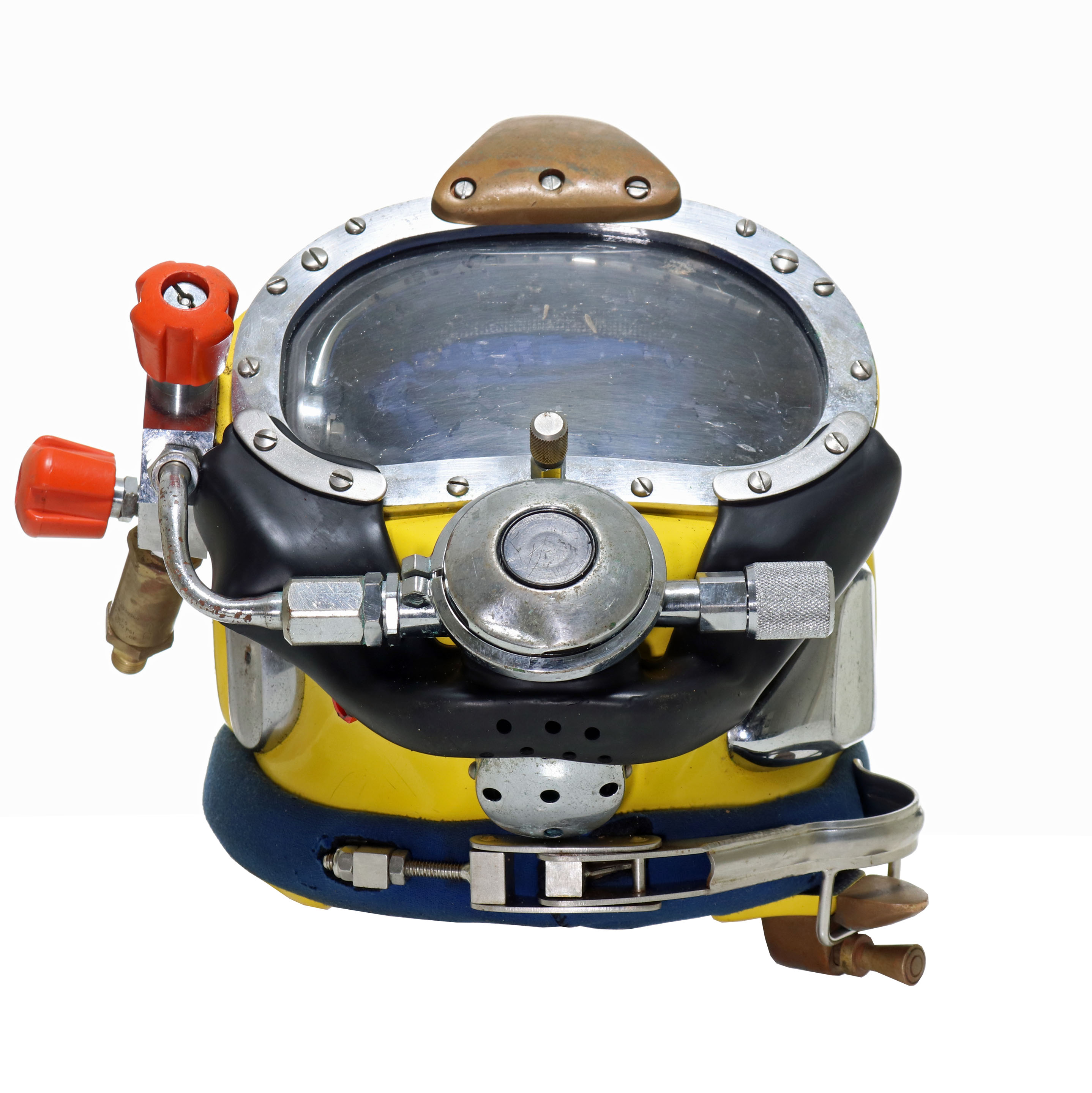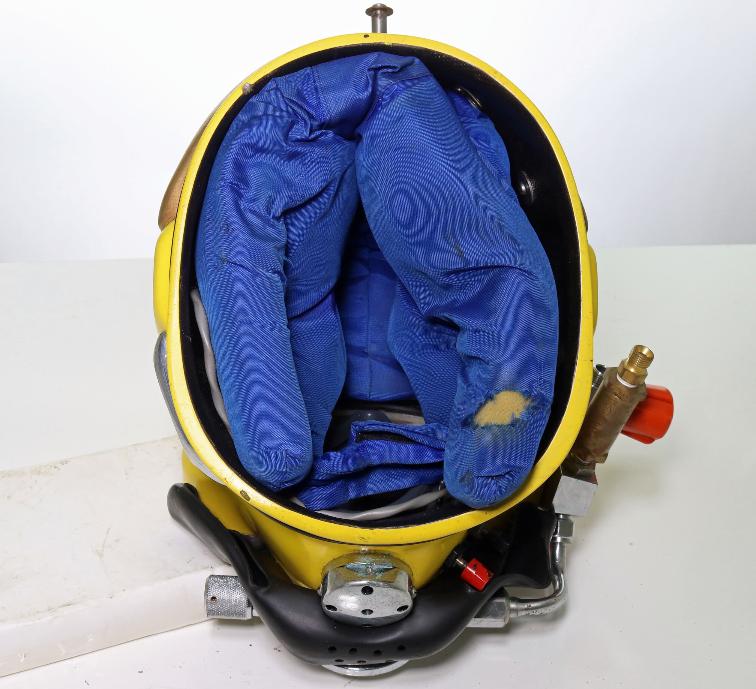 Approximately two years ago this helmet was discovered by a commercial diver who took note of its unusual early components. After sending photos to Kirby Morgan the helmet was verified as being made in 1978. While the early date is notable, the original parts still somehow remaining on this helmet are remarkable.