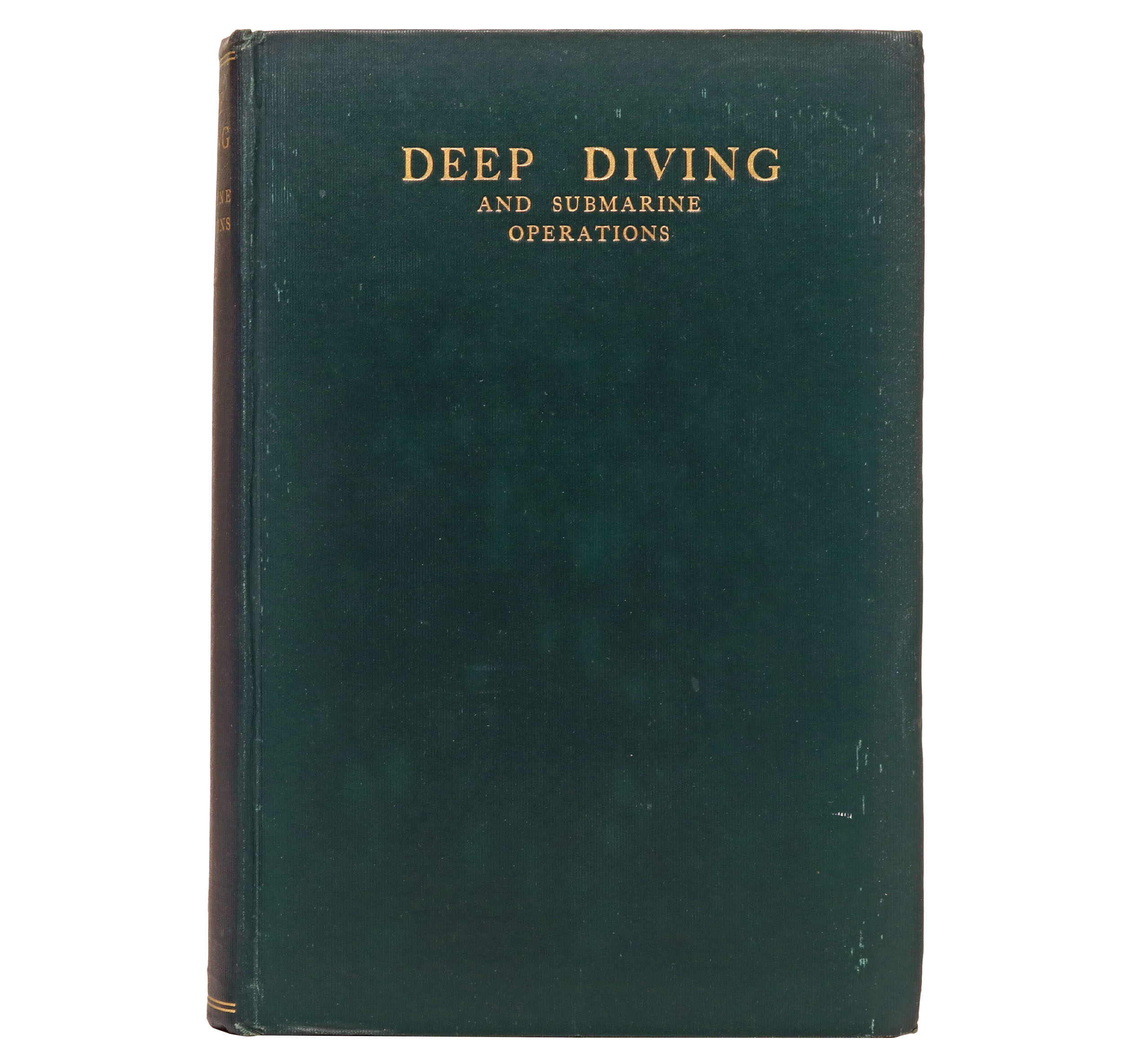 This is a 4th Edition of Deep Diving & Submarine Operations. This circa 1935 hardcover 8vo features 502 pages and is stamped inside PRESENTATION COPY. The deep green hardcover and back have some slight scuffing and marks. The first page is the index page ix, which is a fold-out; this section is loose. Pages 1 through 510 are intact and clean. Very handsome book with incredibly detailed illustrations and photos.