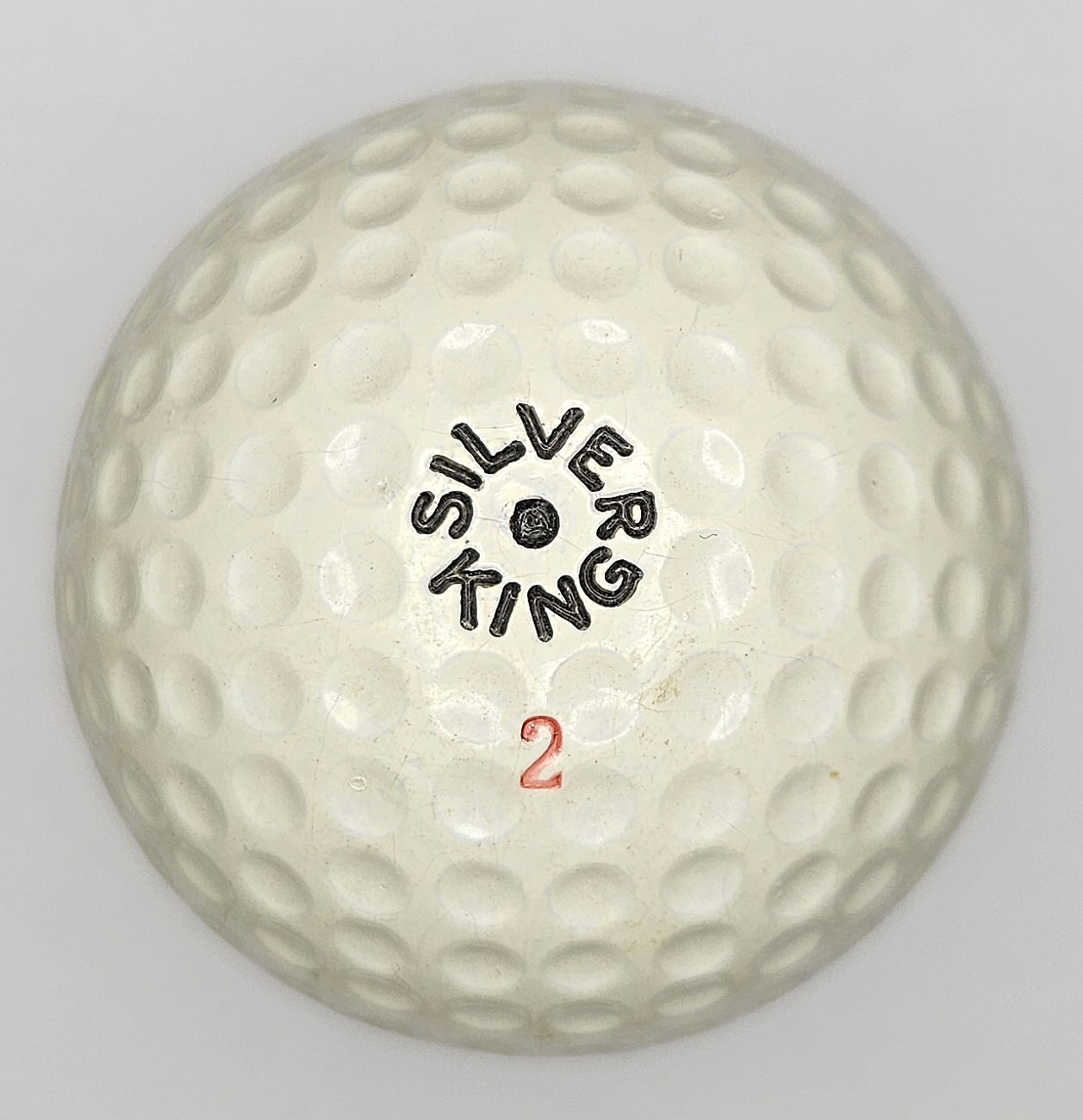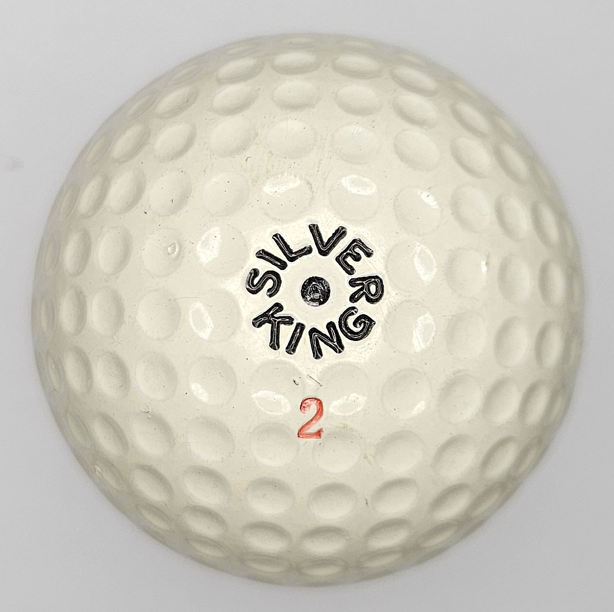 This is an excellent example of a Silver King Black Dot #2 golf ball made by Silvertown Golf Ball Manufacturing Co. in England. 1.62” diameter ball. No noticeable flaws on the cover, strong white even color, maker’s stamps are strong.