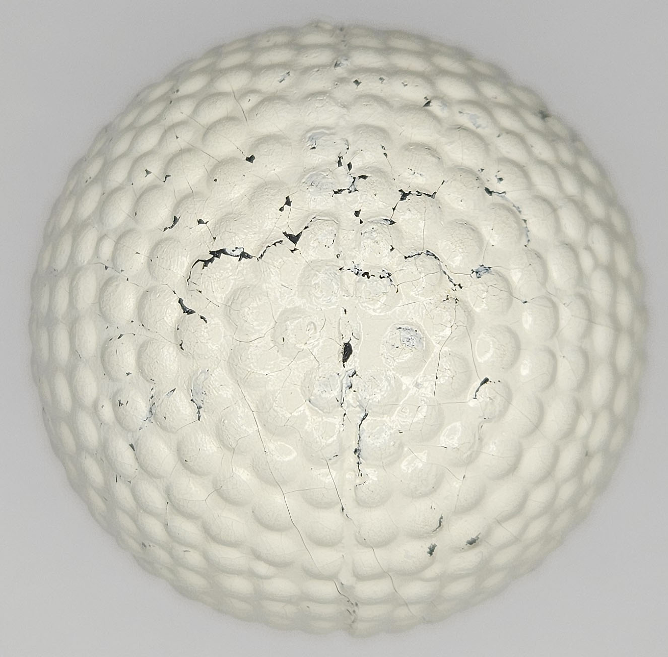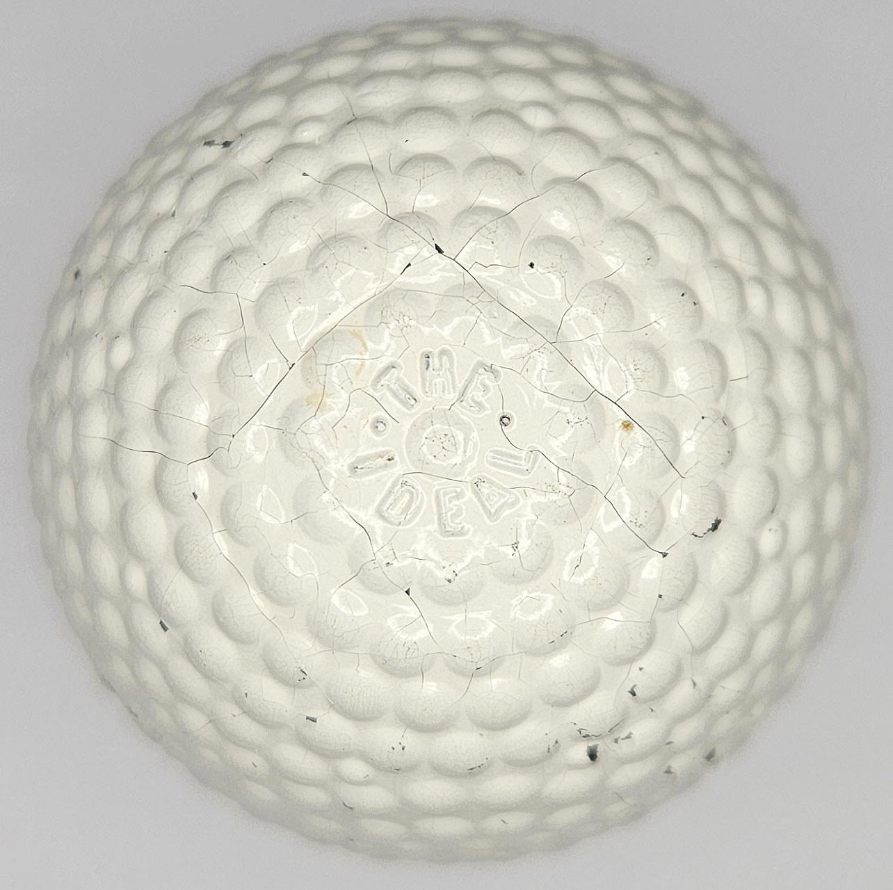 This is a very nice example of a Willie Park Jr Ideal bramble golf ball circa 1890’s. Willie Park on one side, The Ideal on the other. Only minor blemishes to white cover from handling.