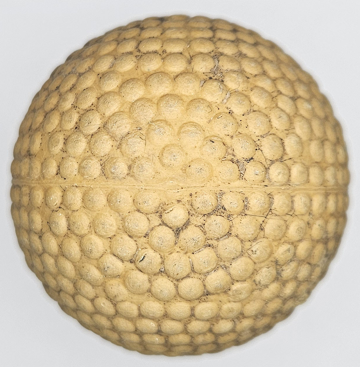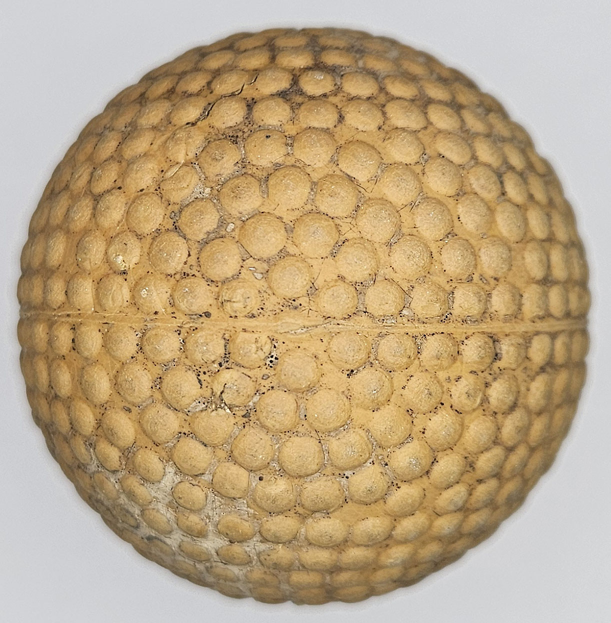 This is a very nice example of a The Link bramble golf ball circa 1890’s. The Link with a single dot is on both sides. Consistent brown patina, no notable blemishes.