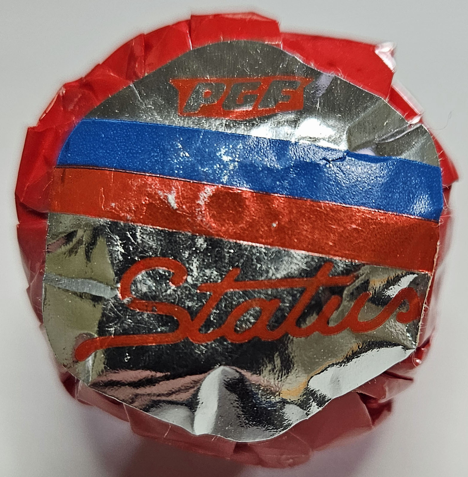 Three excellent vintage PGF golf balls in their original wrappers. This is a Status model ball. Label and wrapper appear nearly flawless.