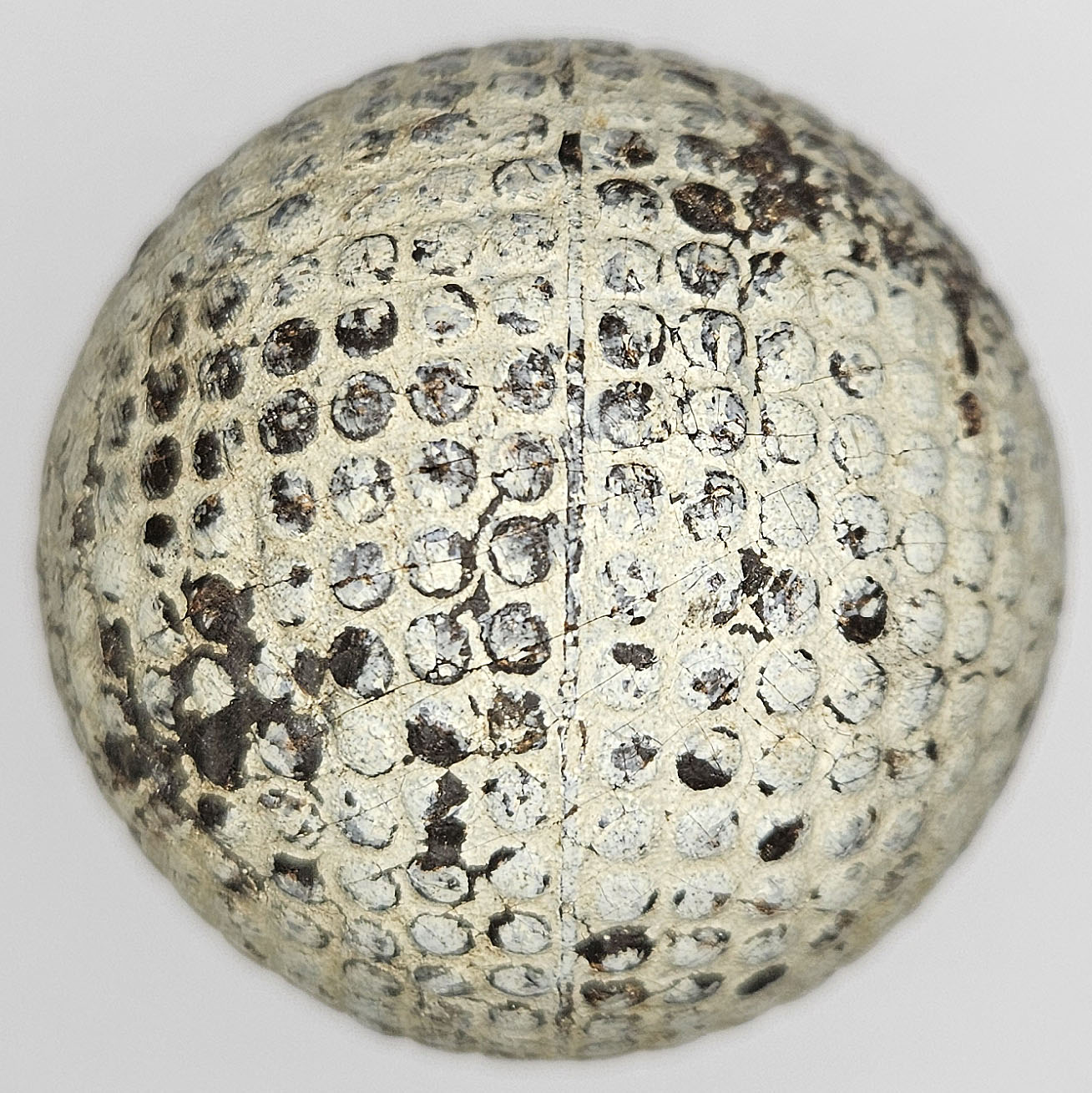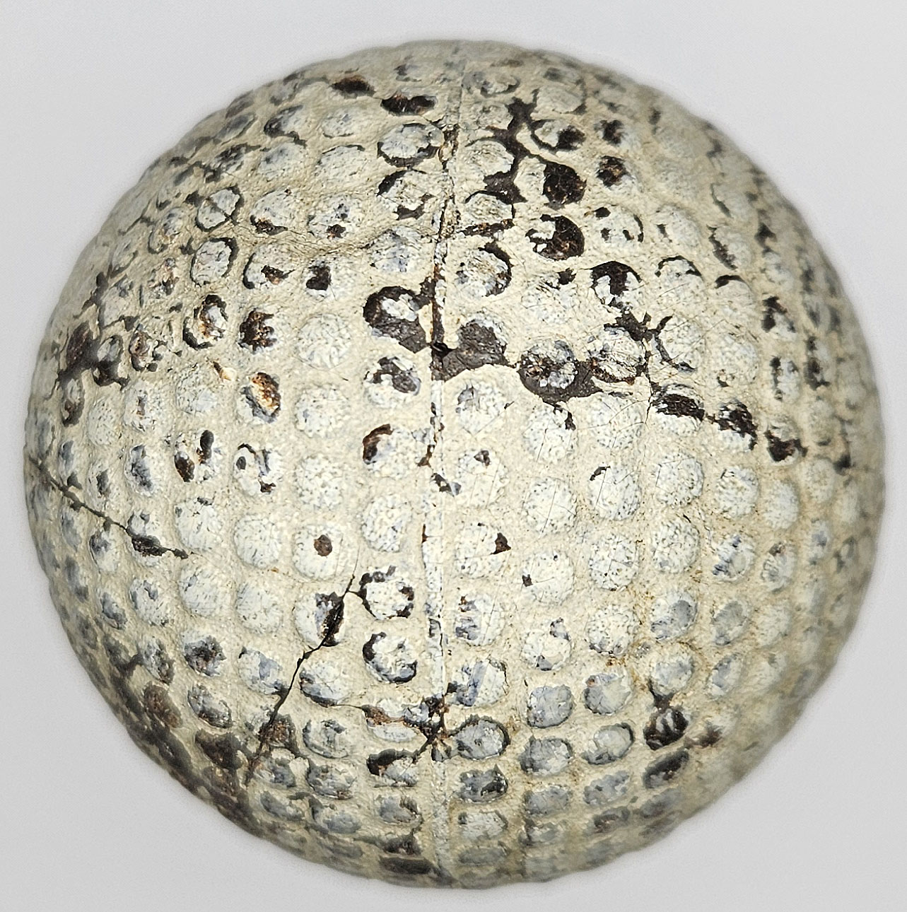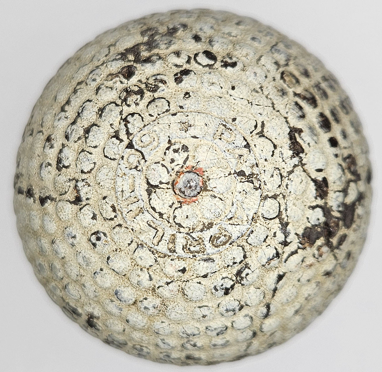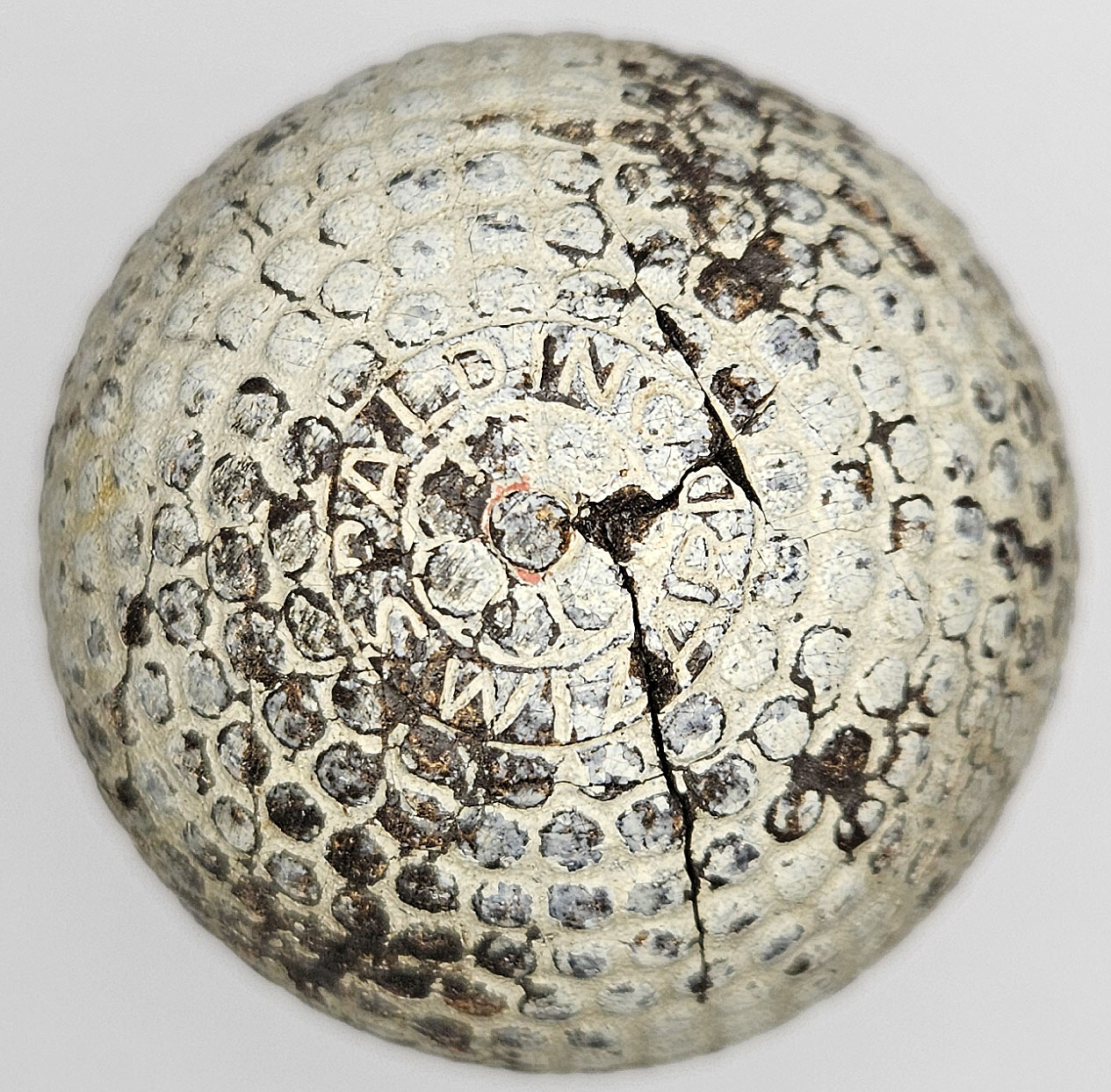 This is an original Spalding Wizard bramble pattern golf ball. One pole features the patent date of April 11 – 99, which is 1899. Details on both poles are clear. Fascinating ball.