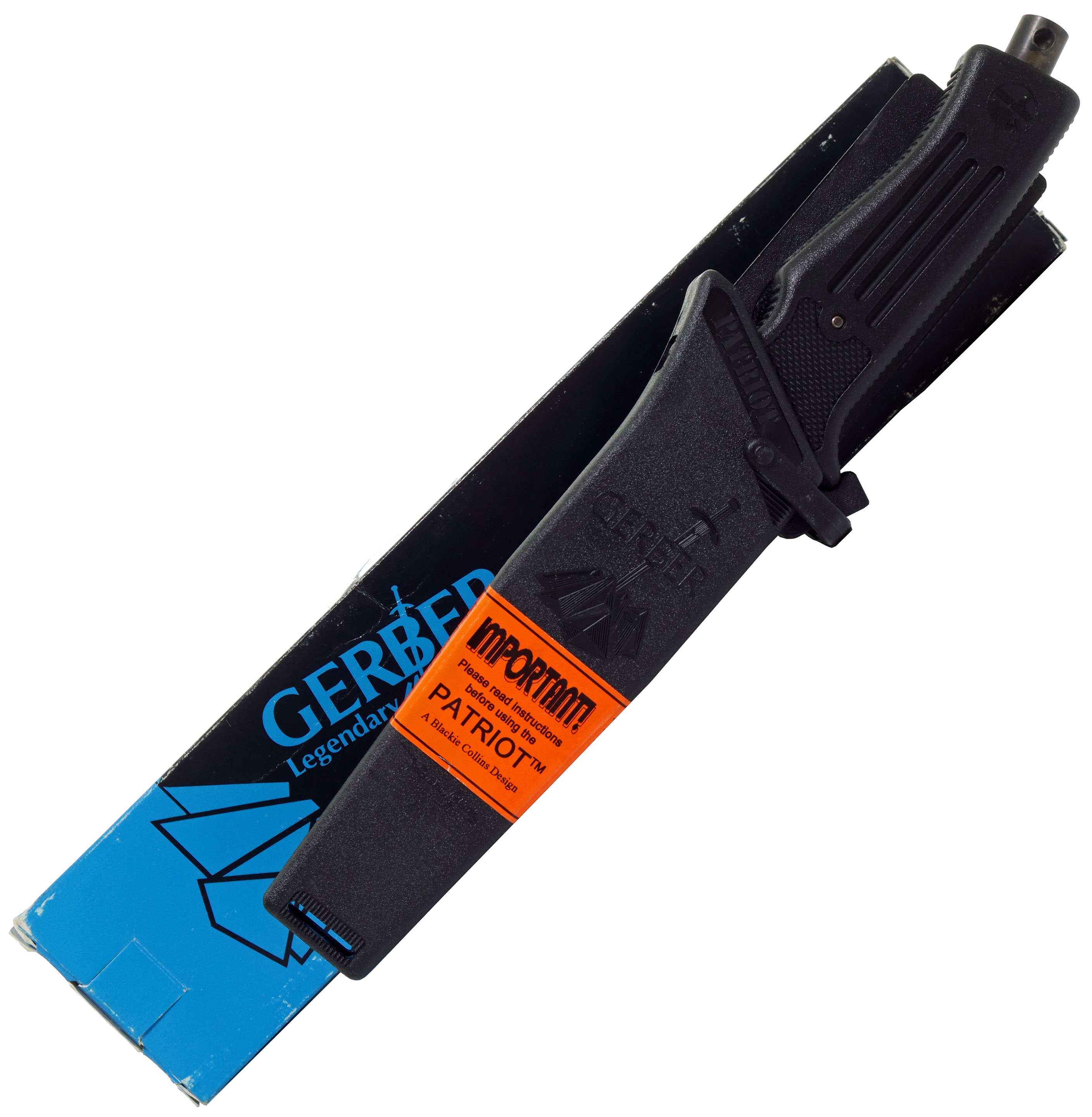 This is a like new never used Gerber Patriot black finish with sheath knife, model 05965. This knife comes in the original box. Please refer to the photos for additional details. International bidders are advised that some countries do not allow the importation of knives. Nations Attic is not responsible for shipping charges going or coming back if your country’s customs denies delivery. Rejected items can be consigned into a future sale as there are no refunds.