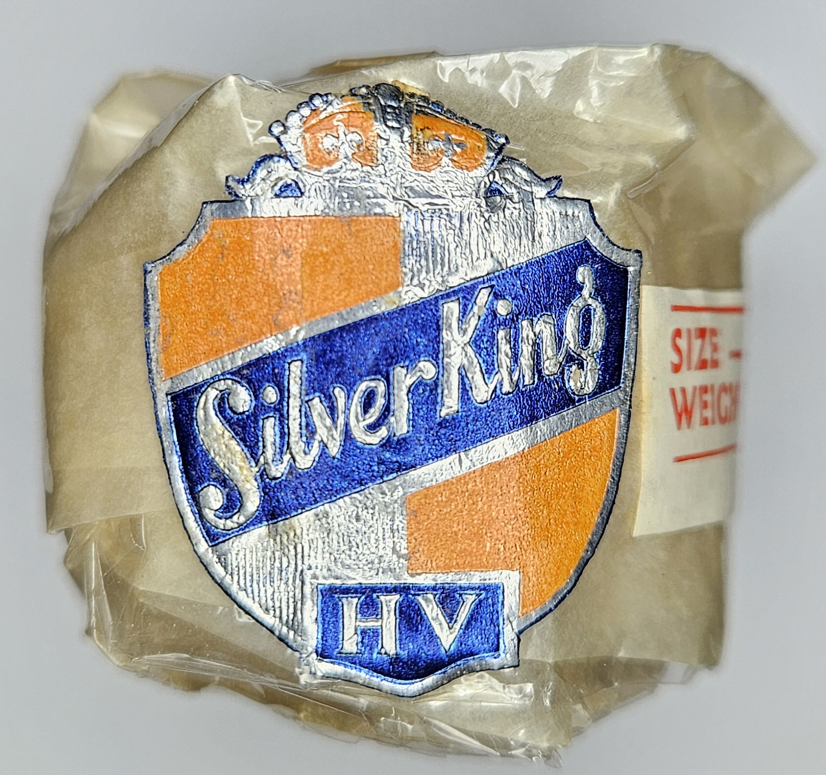 This is a vintage round dimple pattern golf ball made by Silverton Golf Ball Manufacturing Co. It is a model Silver King HV in its original wrapper with label intact. The label indicates the ball is 1.68” in diameter and weighs 1.62 oz. Ball appears to be in like new condition. Please refer to photos.