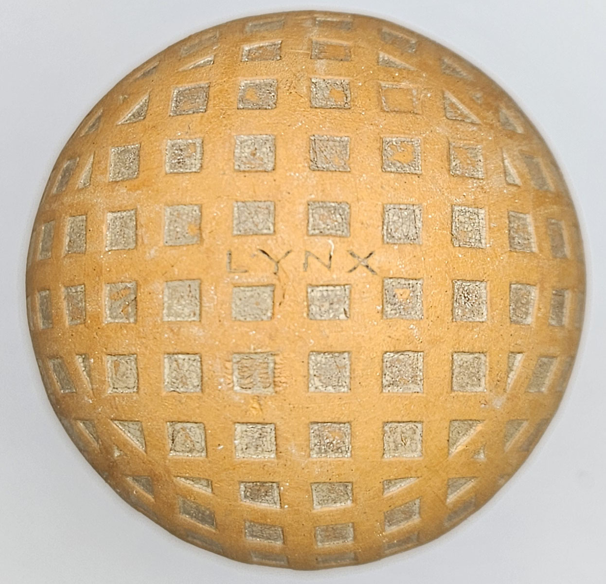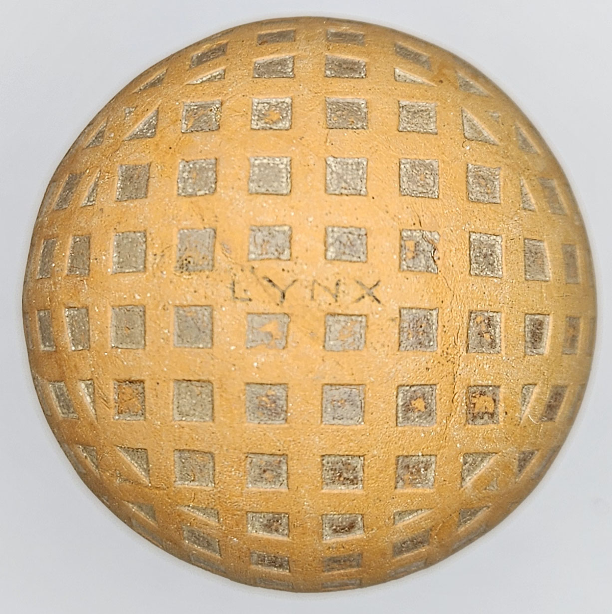 This is an antique square or mesh pattern golf ball made by Lynx circa 1920’s. Great consistent patina on the cover. Please refer to photos.
