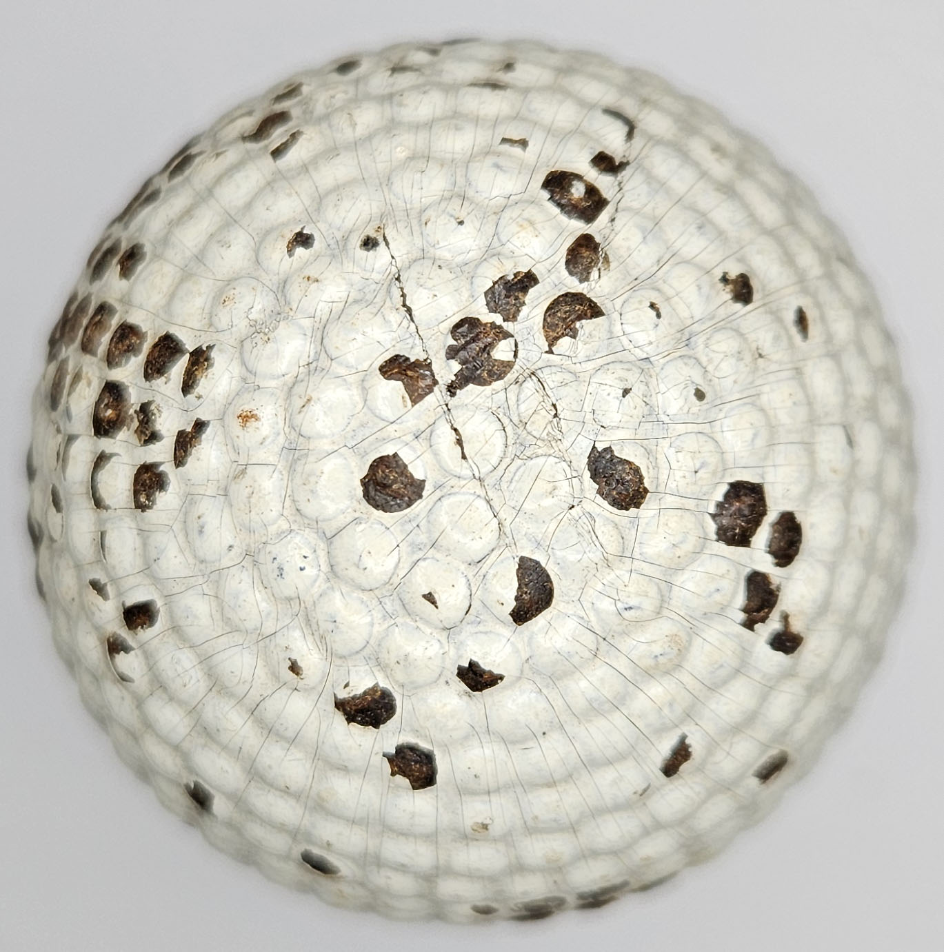 This is an antique bramble or raised pattern golf ball made circa 1910’s. There are no model or maker’s names on this ball. Some superficial surface wear. Please refer to photos.