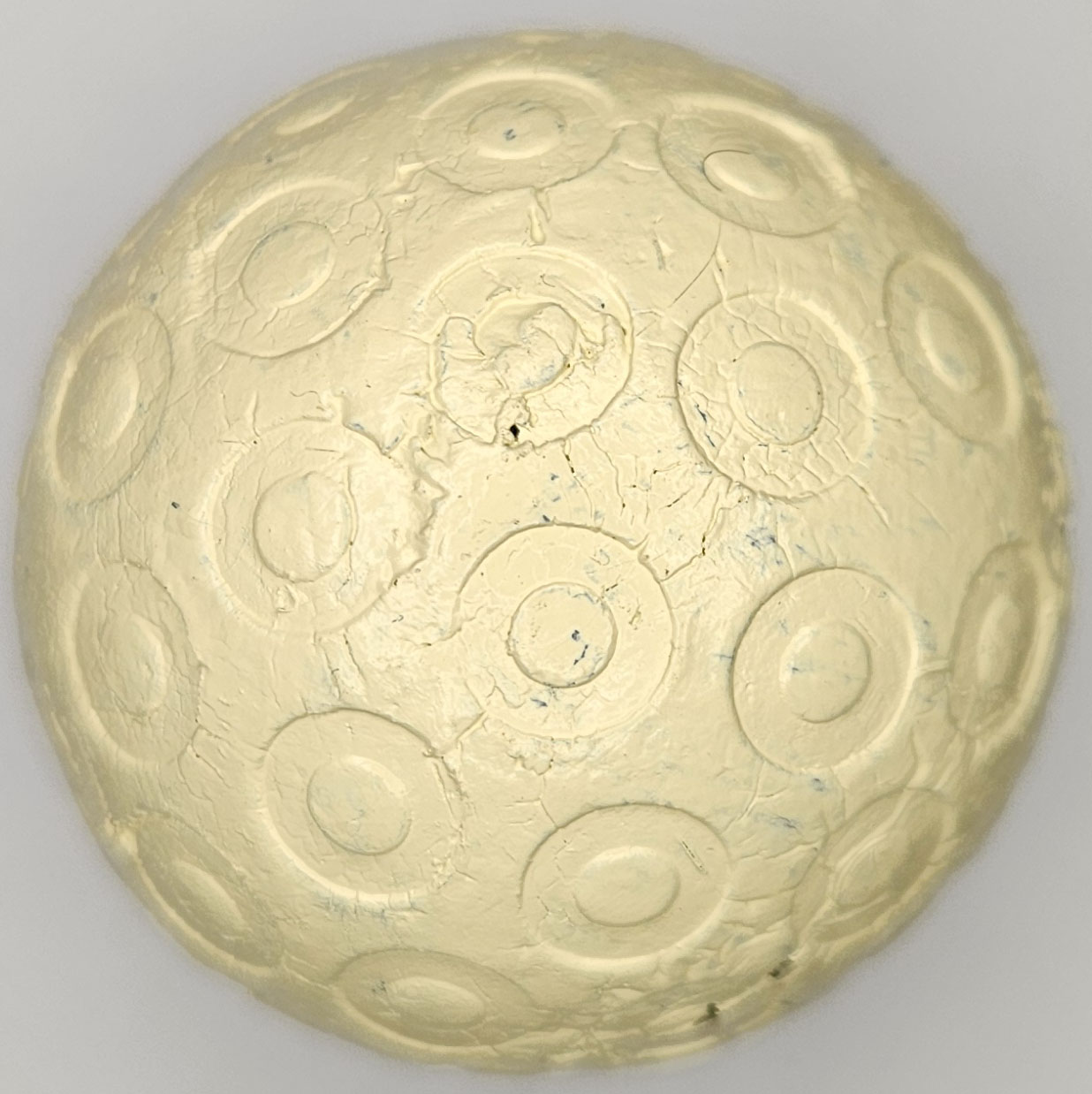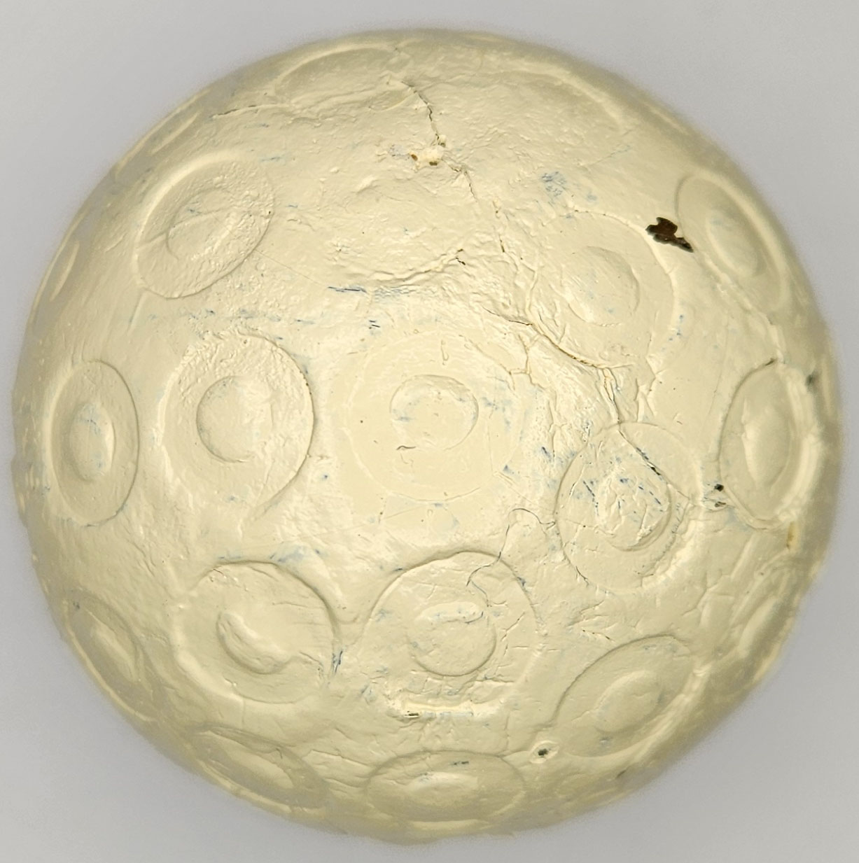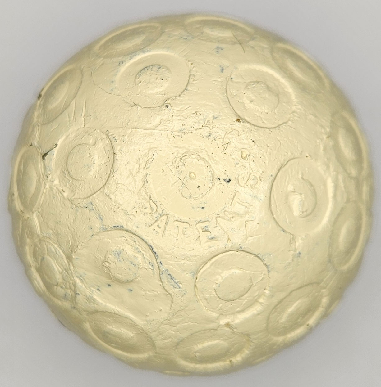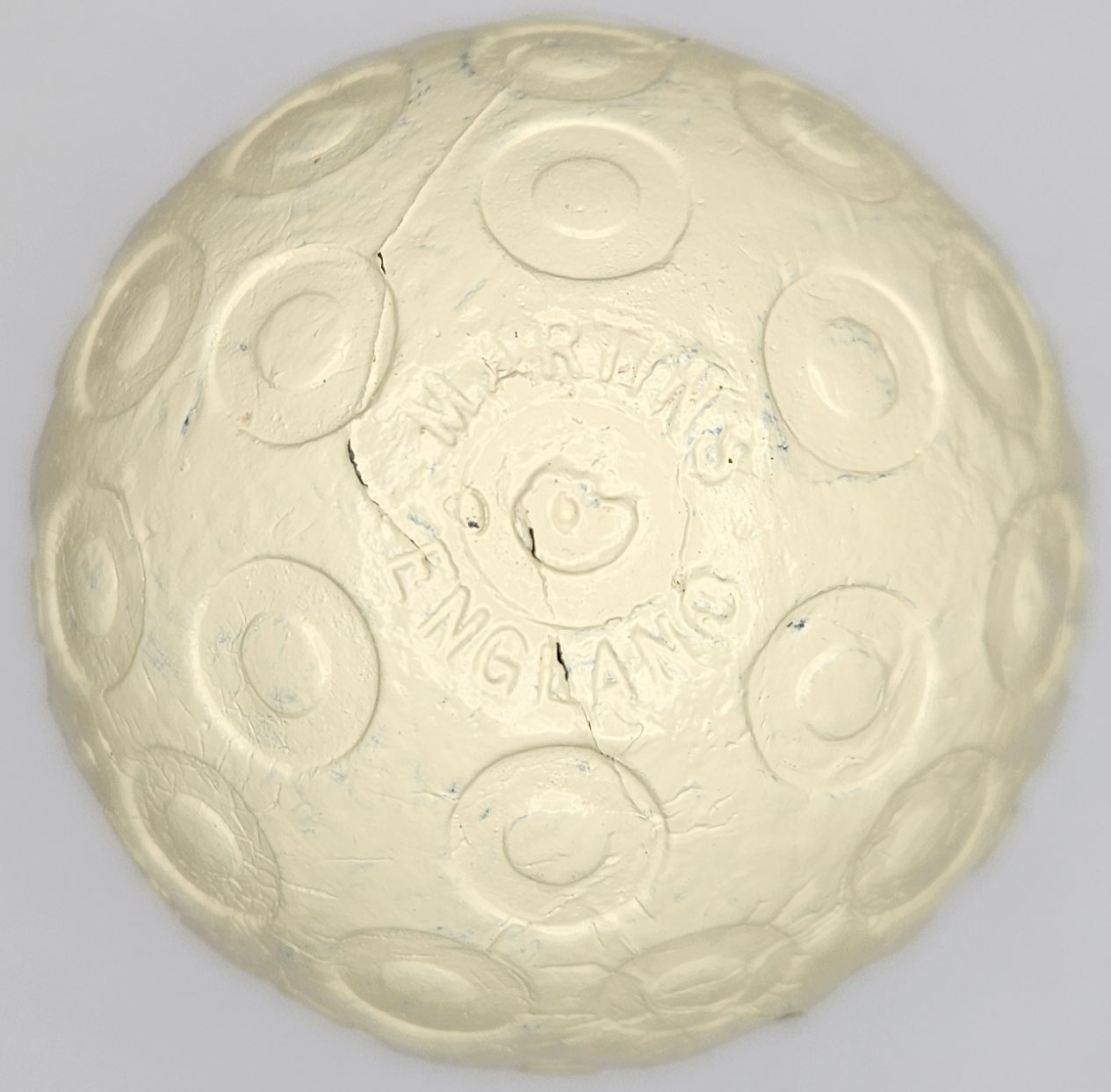 This is an antique “doughnut ring” pattern golf ball made by Martins Birmingham Ltd, circa 1900’s. One pole features Martins England, the other pole Zodiac Patents. The “doughnut ring” pattern is quite unique. The ball is in very good condition. Please refer to the photos.