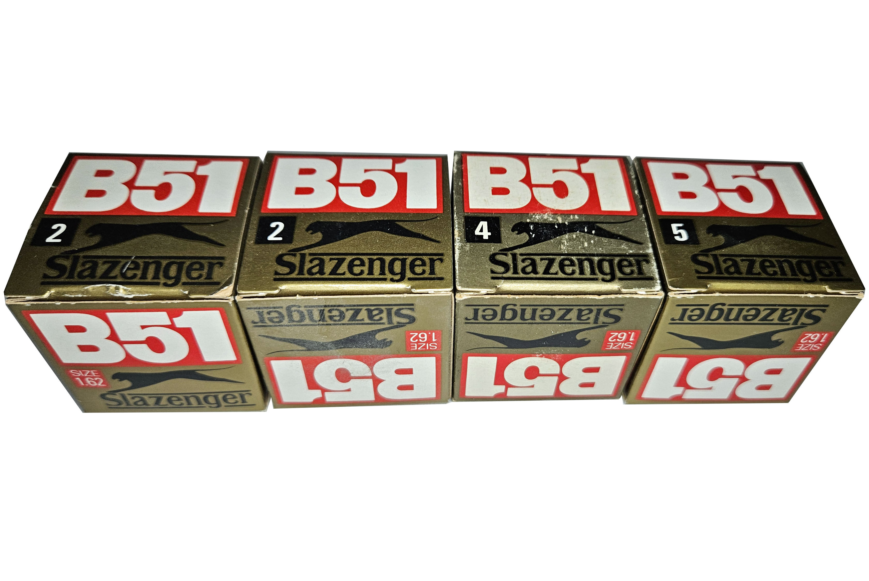 This is a grouping of four original vintage Slazenger B51 balls. Each one is in its original box with internal wrapping. Please refer to the photos.