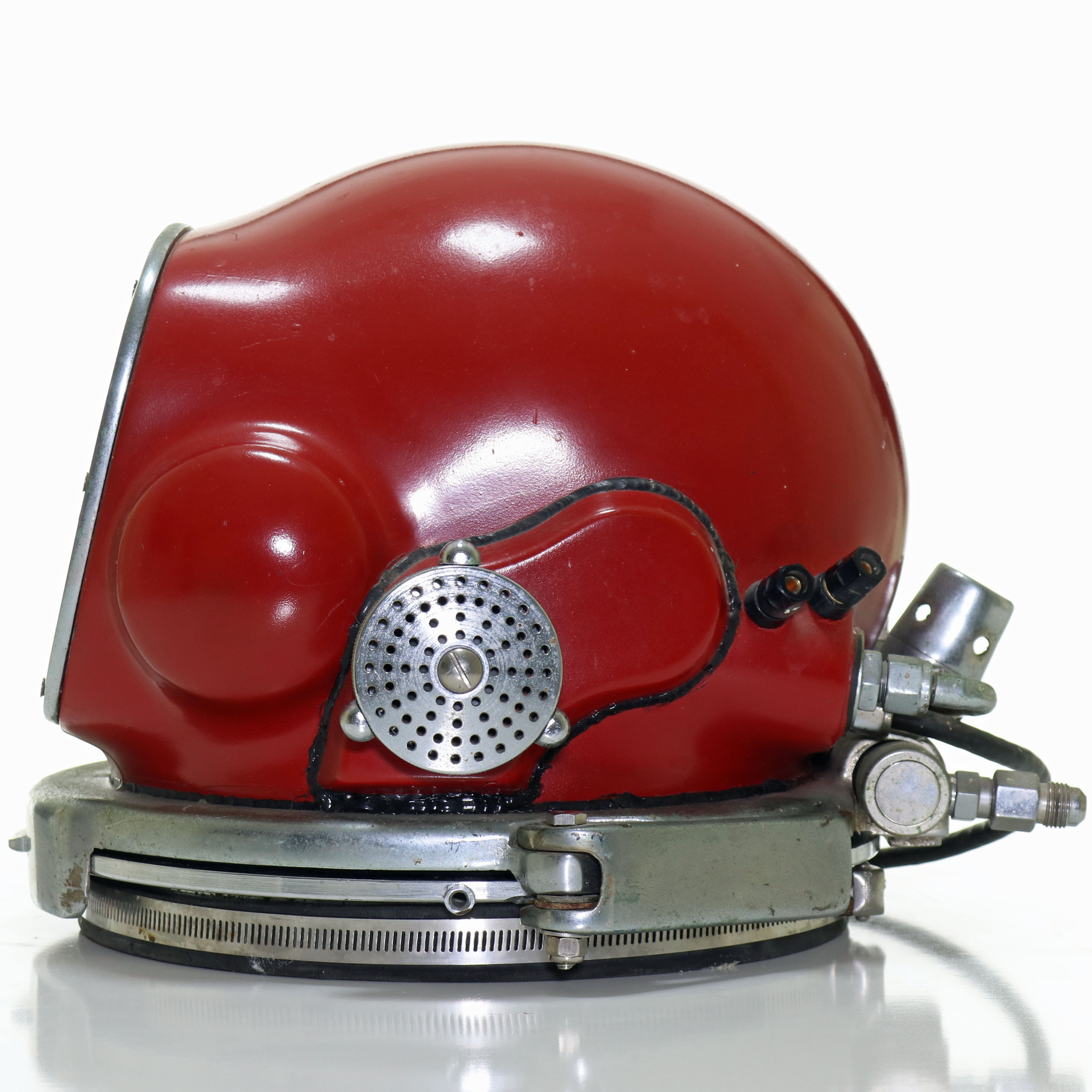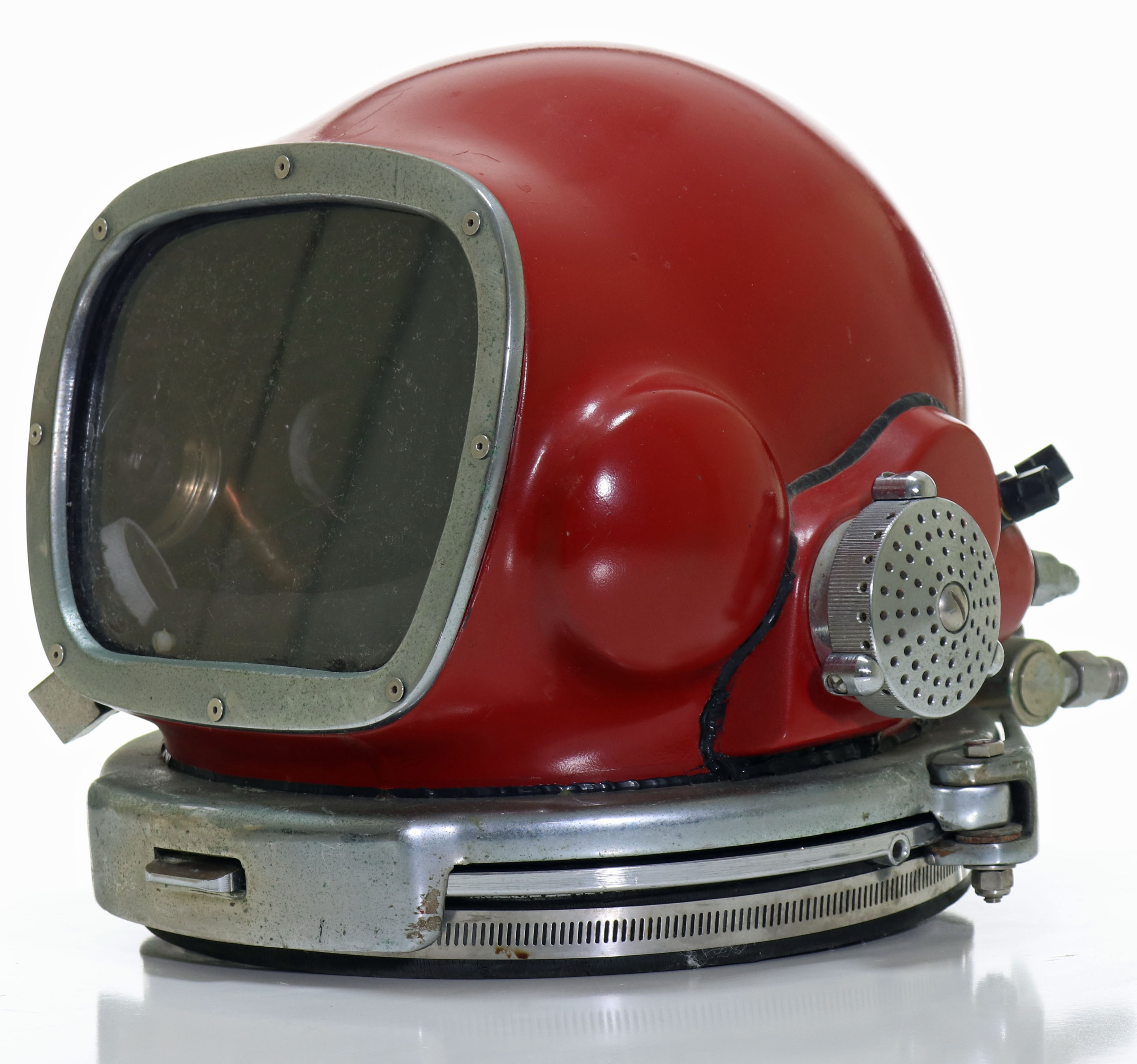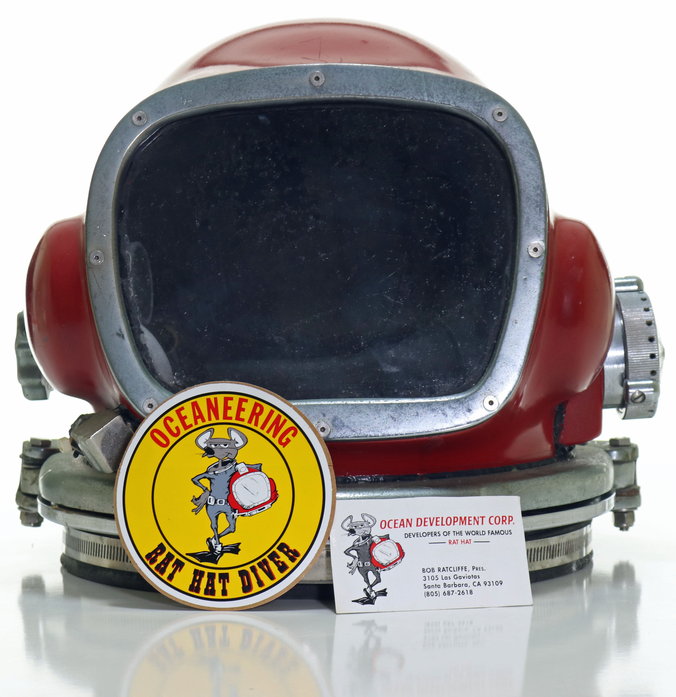One of the most iconic and historic diving helmets from the late 20th Century is the Rat Hat. Designed by Bob Ratcliffe, this fiberglass helmet was prized by divers worldwide. Oceaneering, the company that utilized the Rat Hat was very protective of these helmets and would take all measures necessary to prevent loss of a single helmet.