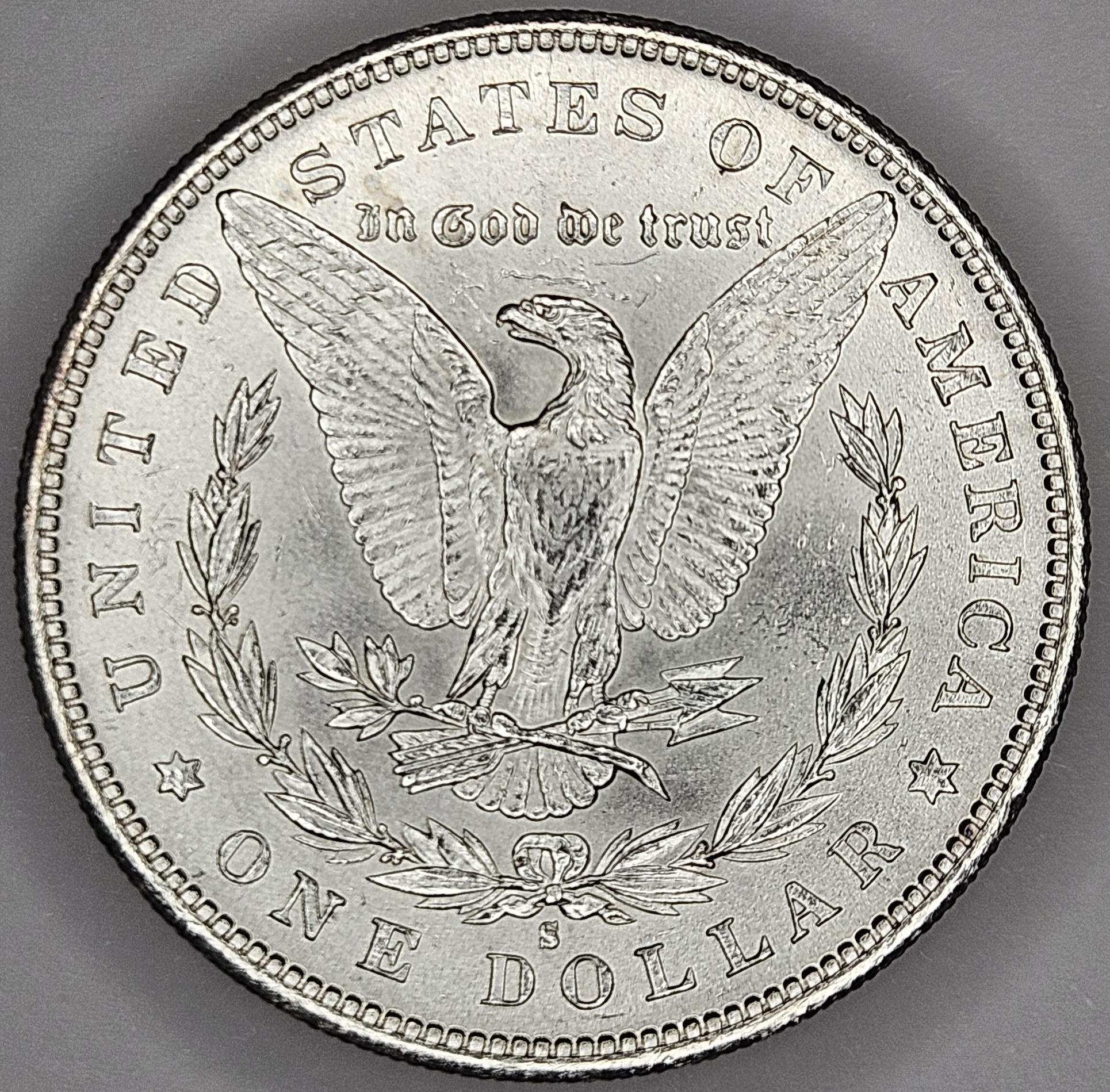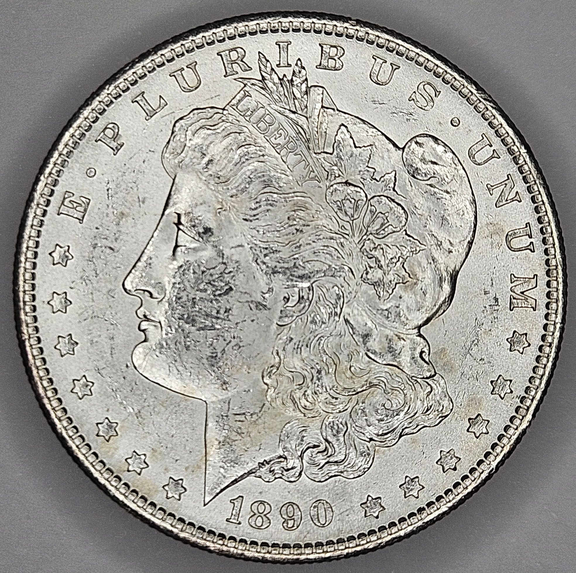 This is a brilliant uncirculated 1890 S Morgan Dollar silver coin. Please review the detailed photos for overall condition.