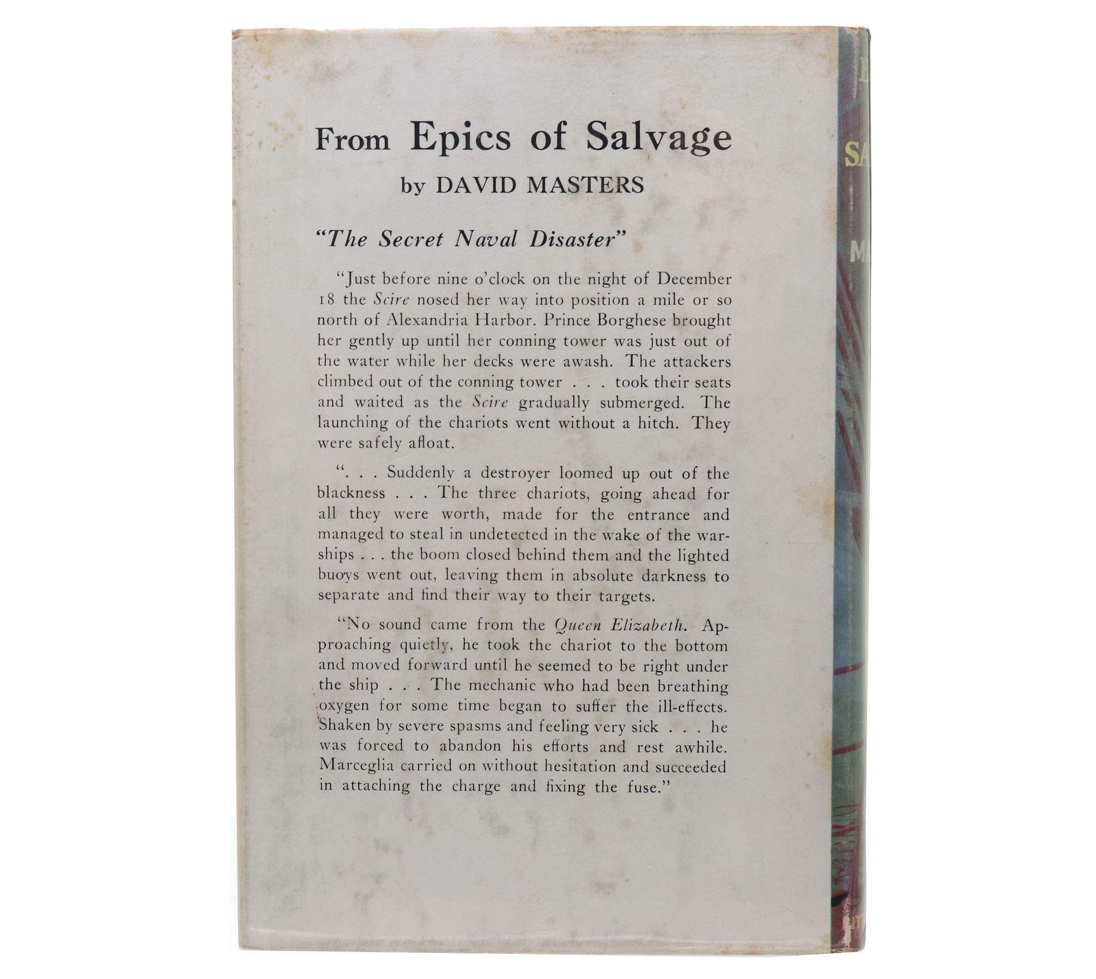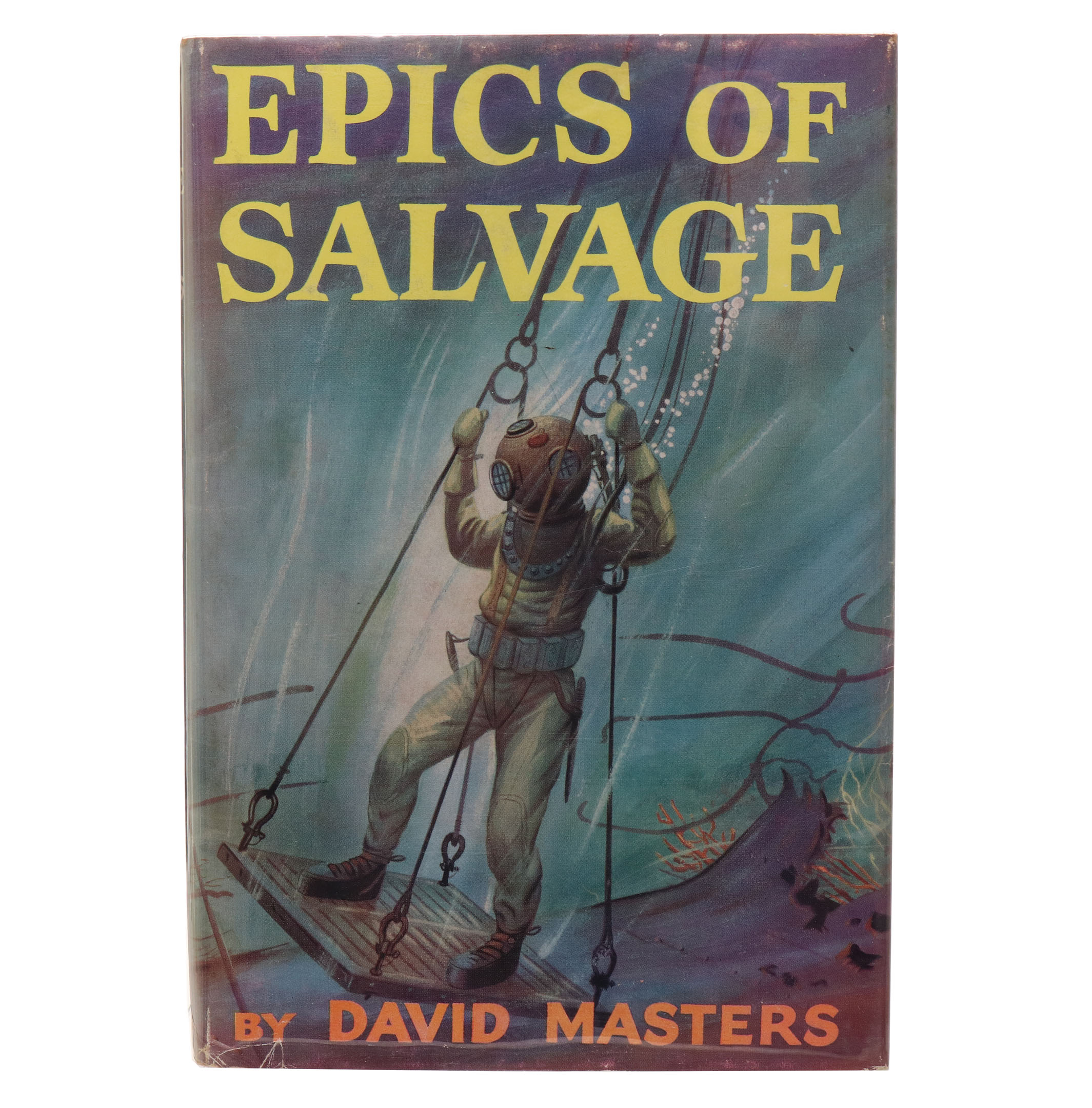 Epics of Salvage by David Masters. 1954, 4 Printing, hardcover with original dustjacket, 234 pages. Dust jacket features wonderful illustration and is in excellent condition. The Secret Naval Disaster! Interior pages are very nice, with light pencil marks on the flyleaf.