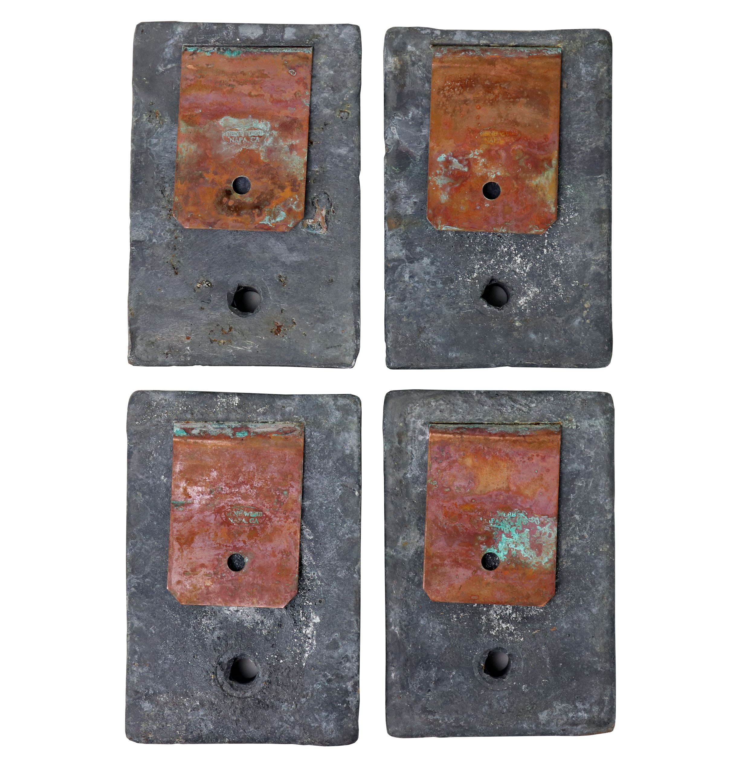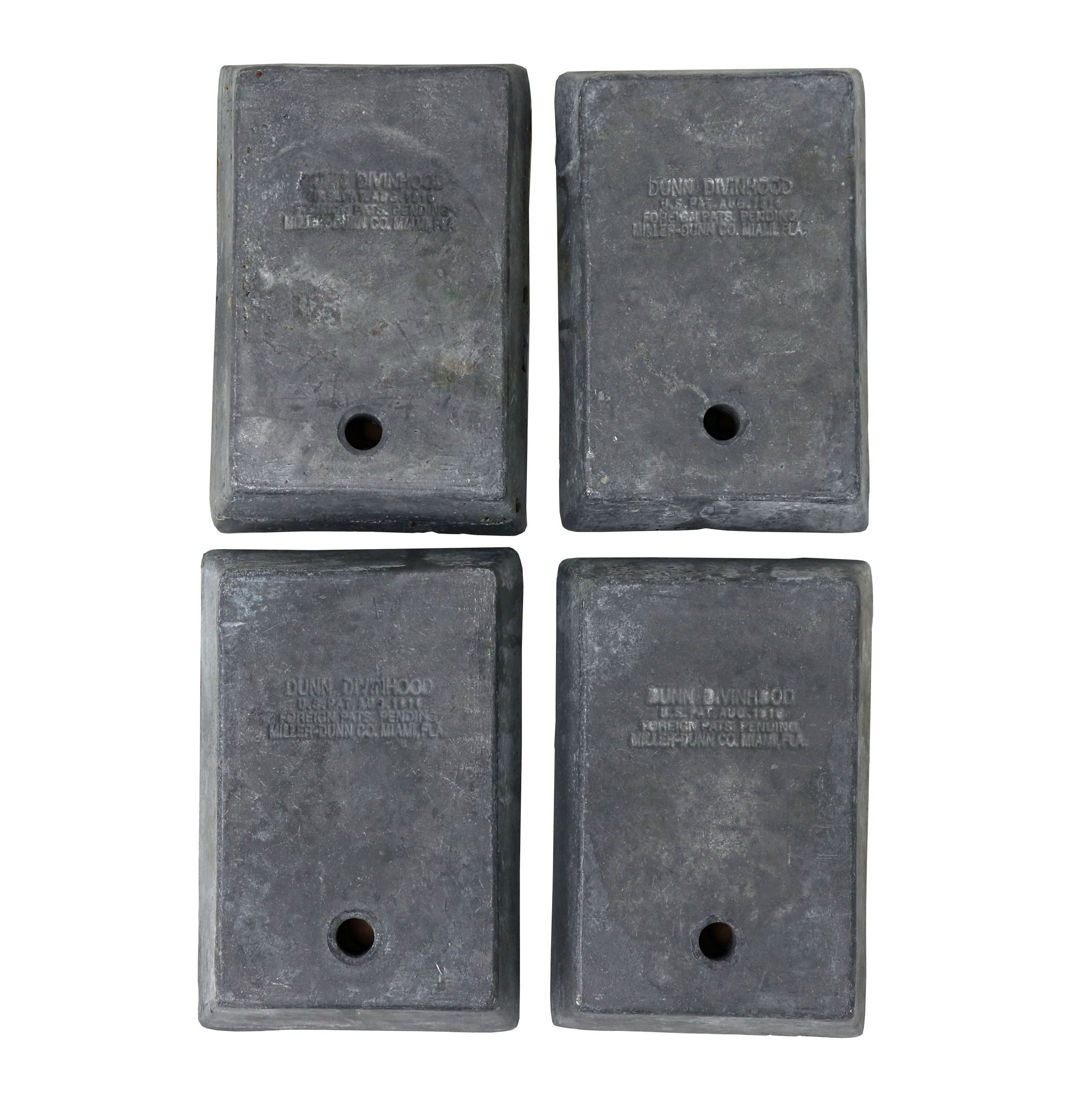 This is a complete set of four lead weights for a Miller Dunn Divinhood Style 1 or 2. Both models of helmets utilized a copper strip that allowed the weights to be hooked to them via a copper tab on the back of the lead weight. This set of lead weights is contemporary and does have the correct copper tabs on the back of each.