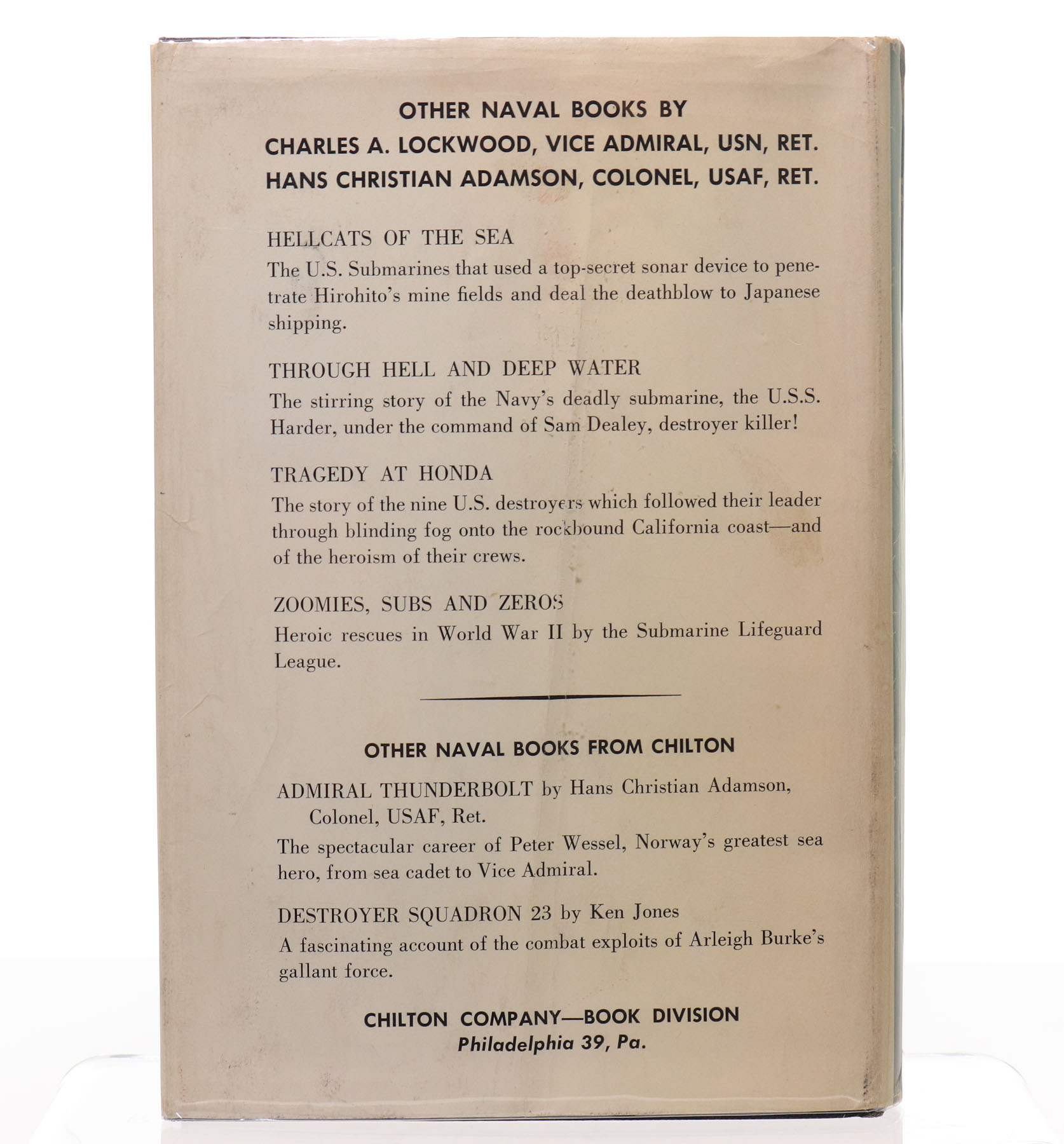 Hell At 50 Fathoms: US Navy Submarine Disasters That Led To Modern Survival And Salvage Methods, 8vo hardcover, 1962 first edition, original dustjacket with only minor edge wear and crease on front and back, 299 pages. All interior pages are very clean.