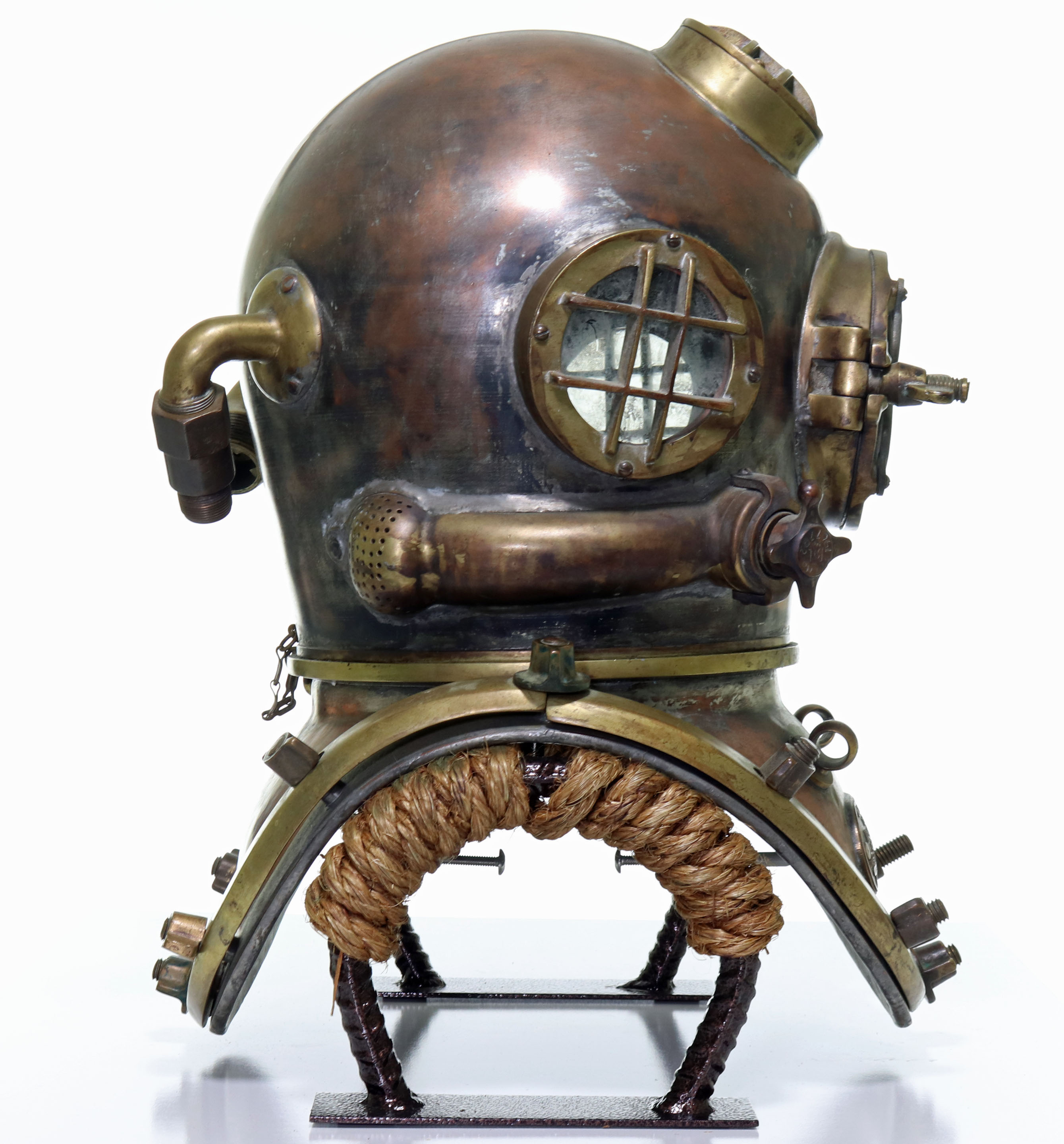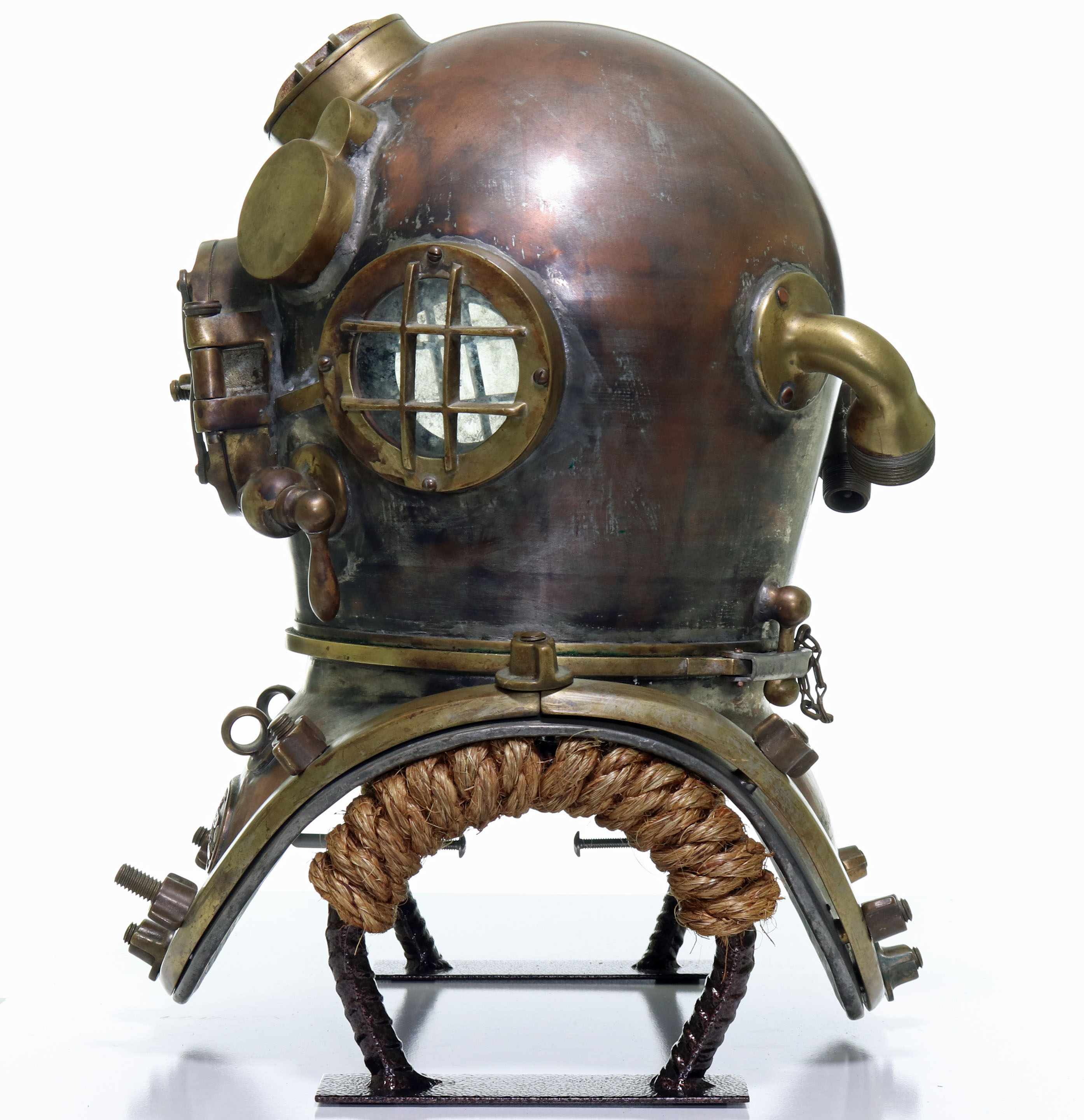 All diving helmets in this auction will be accompanied by a certificate of authenticity from Nations Attic. The certificate will have a unique number that will match the number on a tamperproof hologram decal placed inside the helmet. This information will be kept on permanent file at Nations Attic and help ensure the provenance of the helmet and authenticity.
