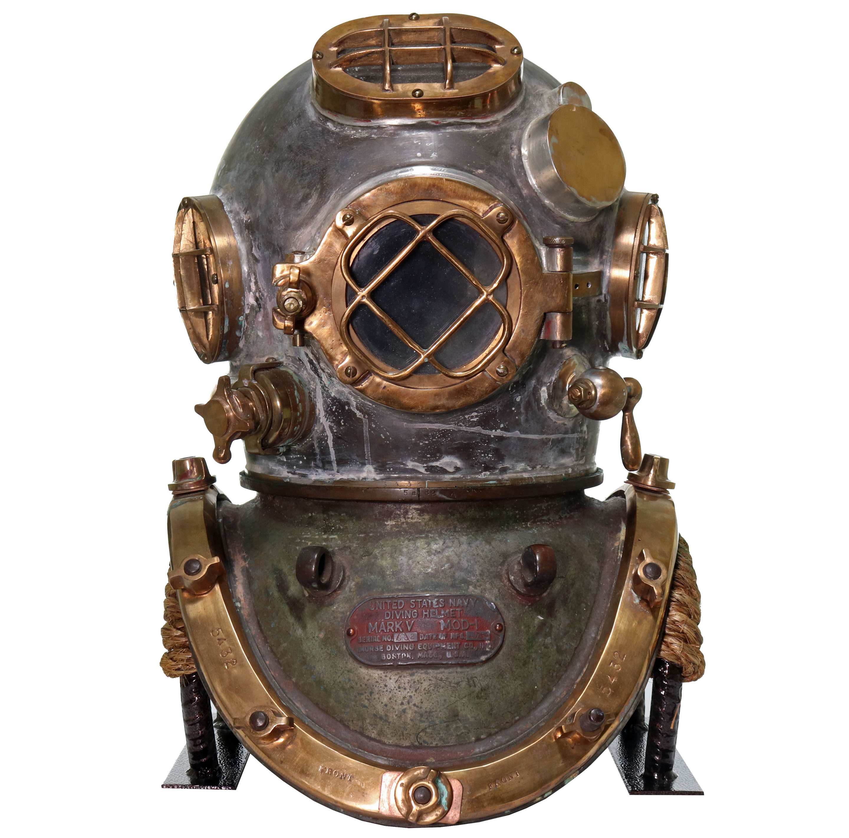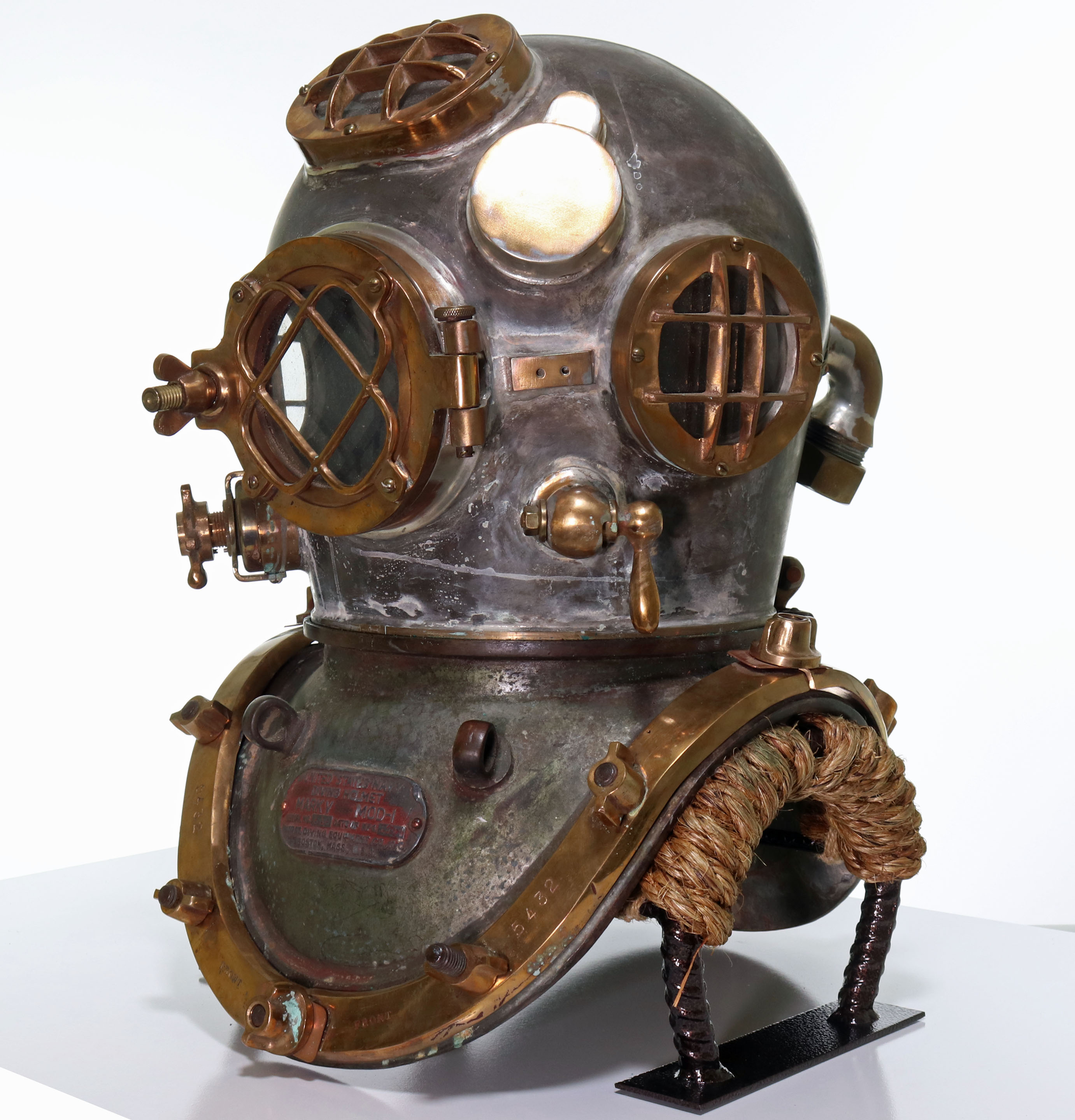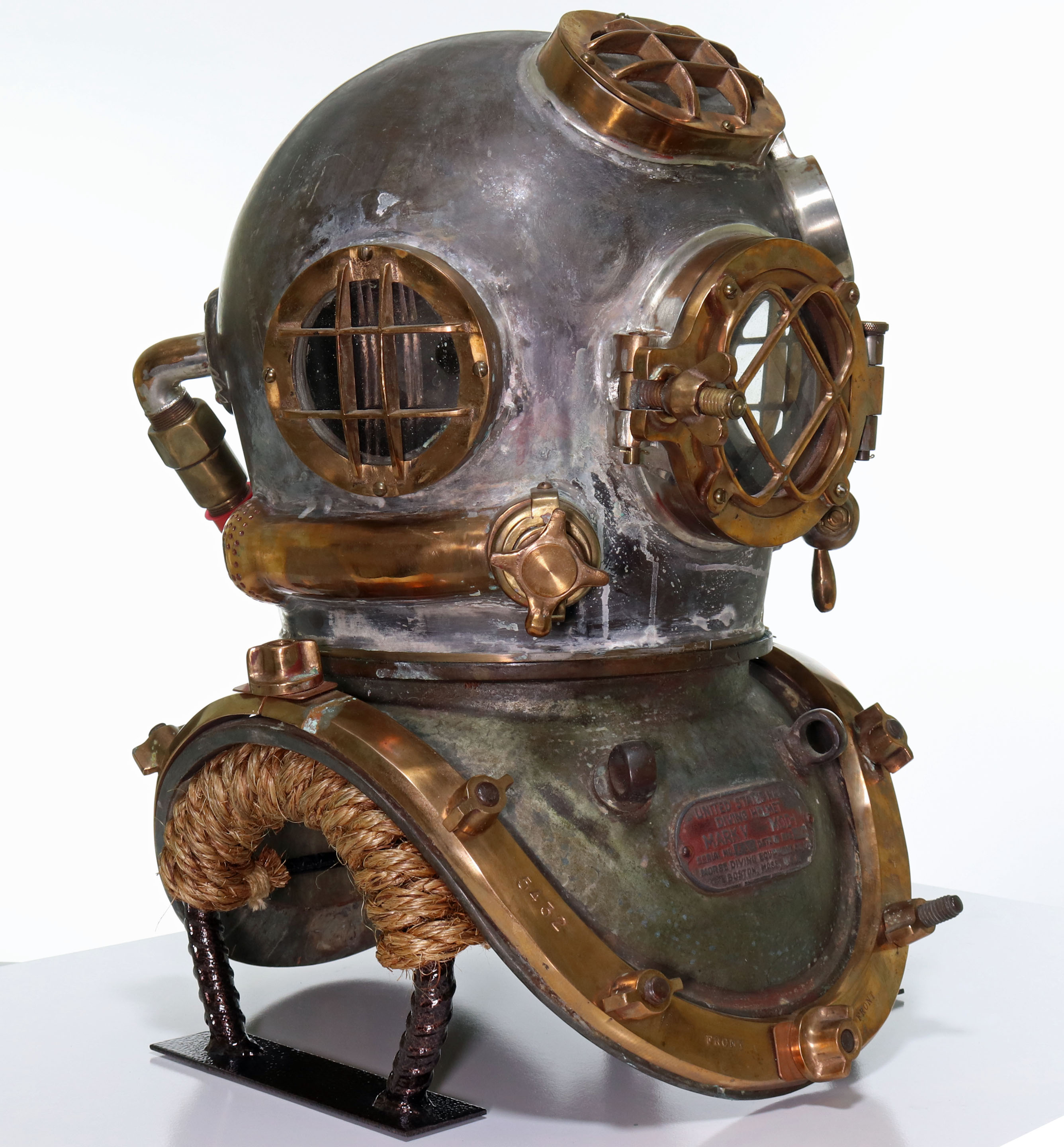 Used by the U.S. Navy from 1916 to the mid-1980s, the Mark V diving helmet is an icon of diving history and a favorite among collectors. Production of the helmet, which peaked during both World Wars, was, among others, handled by the Boston-based company A.J. Morse & Son Inc., and later renamed Morse Diving Equipment. This renowned manufacturer, founded in 1837, became a key supplier to the U.S. Navy, and its 1916 design for the Mark V cemented its place as a legend in the world of diving equipment.