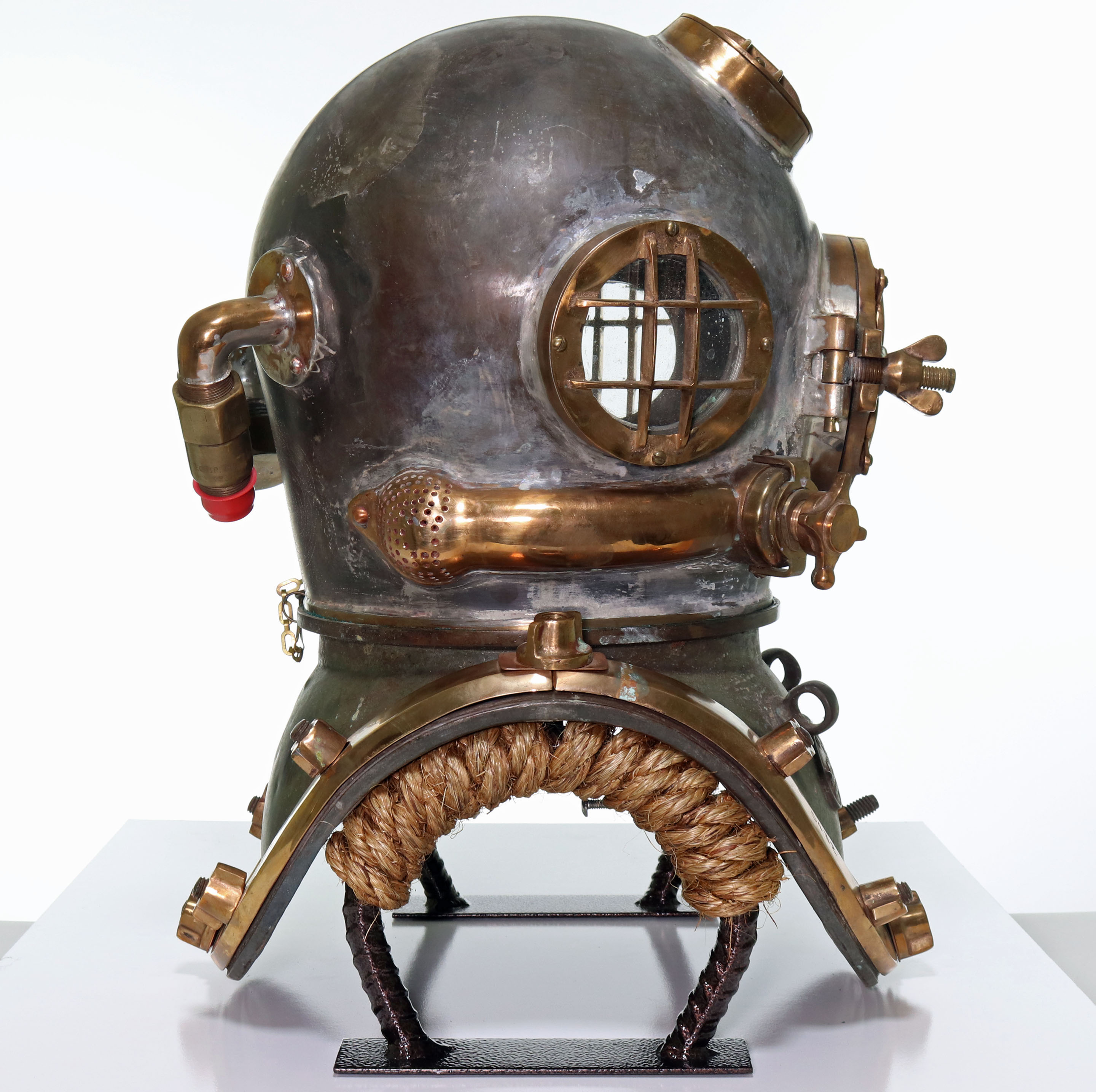 The display stand in the photos is not included. The option to purchase the stand at a discounted price will be available after the auction. All diving helmets in this auction will be accompanied by a certificate of authenticity from Nations Attic. The certificate will have a unique number that will match the number on a tamperproof hologram decal placed inside the helmet. This information will be kept on permanent file at Nations Attic and help ensure the provenance of the helmet and authenticity.