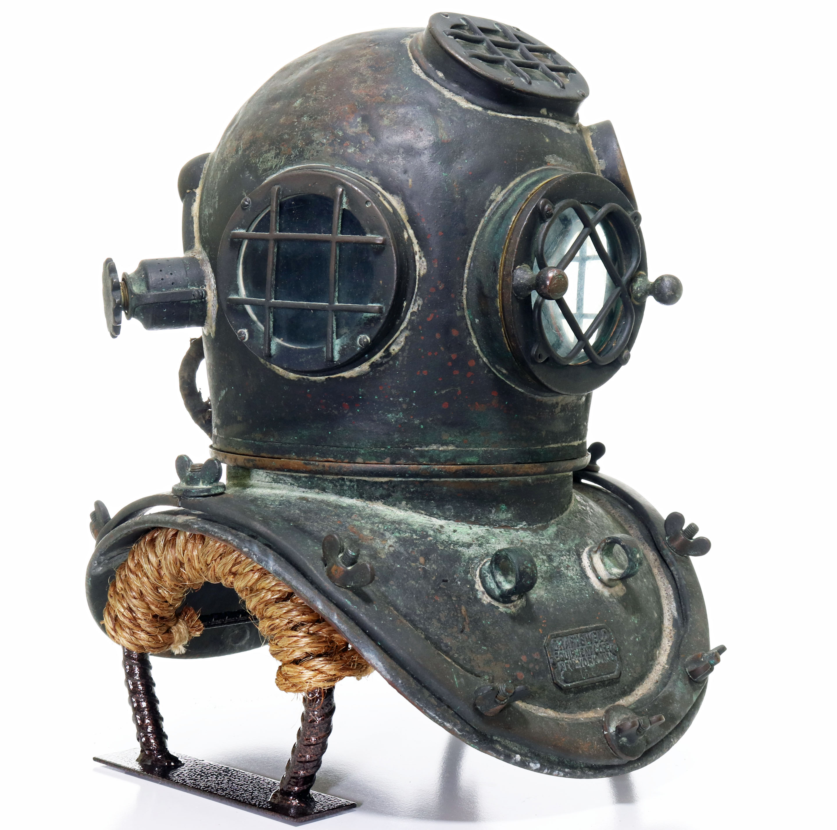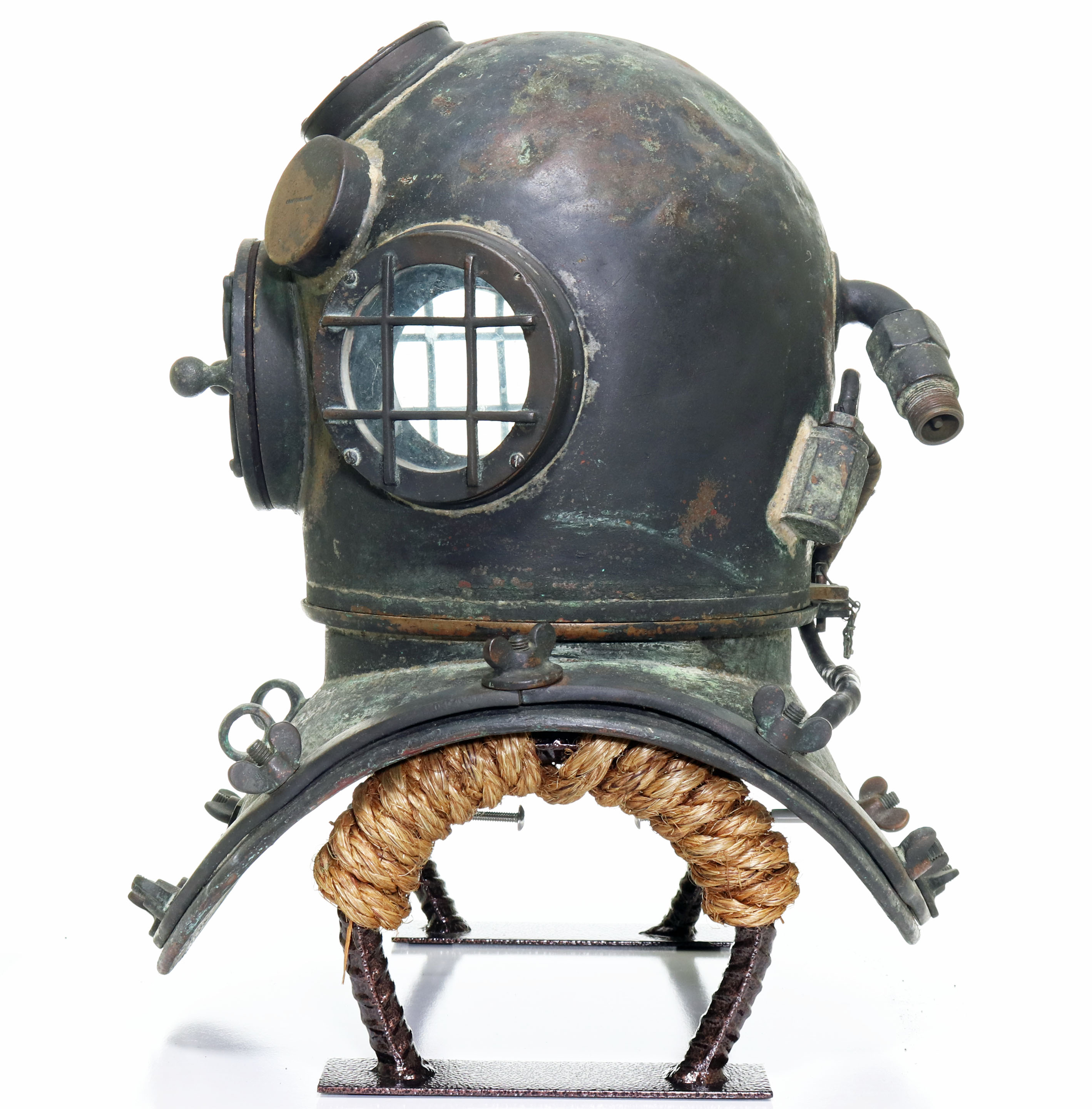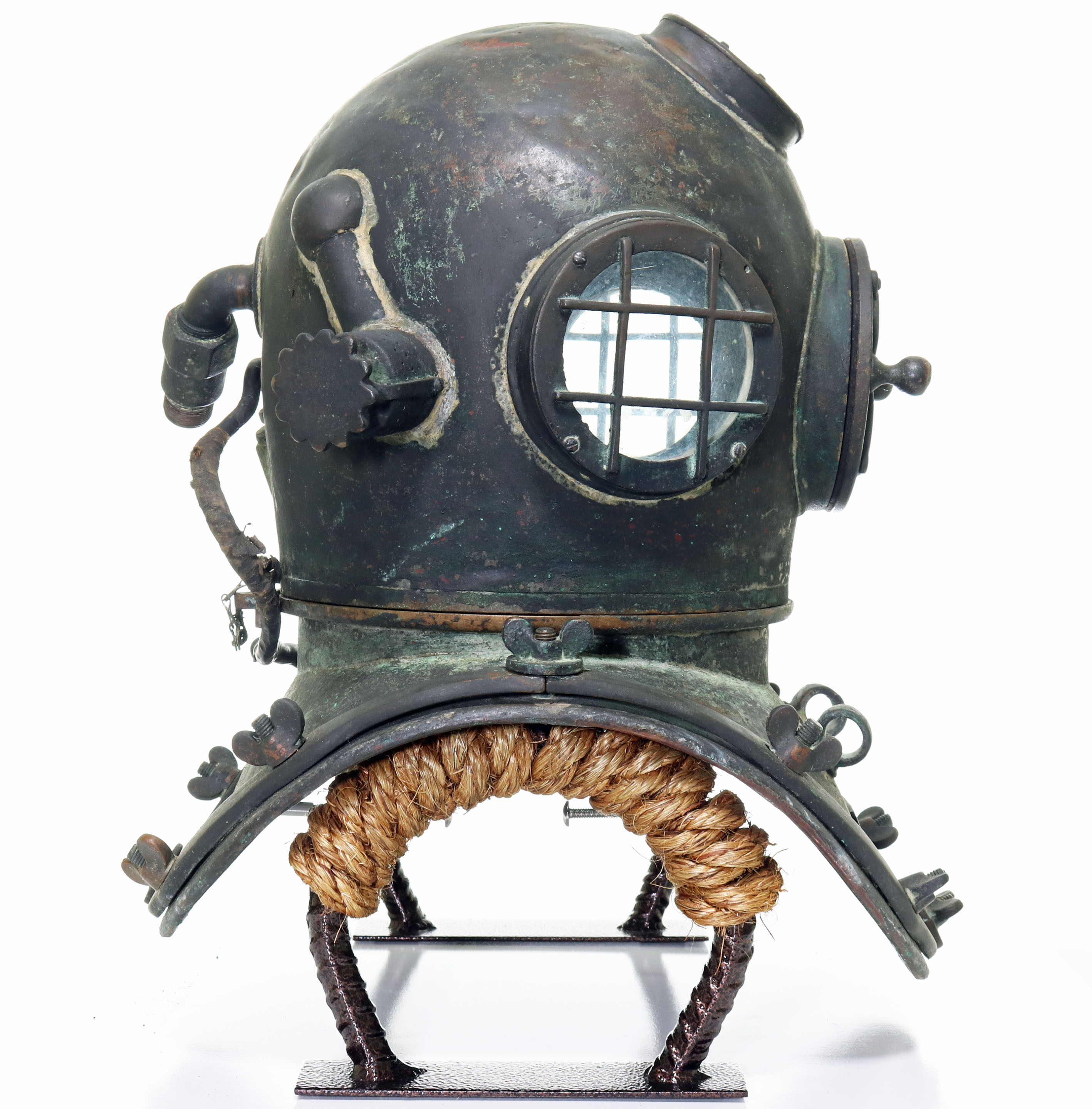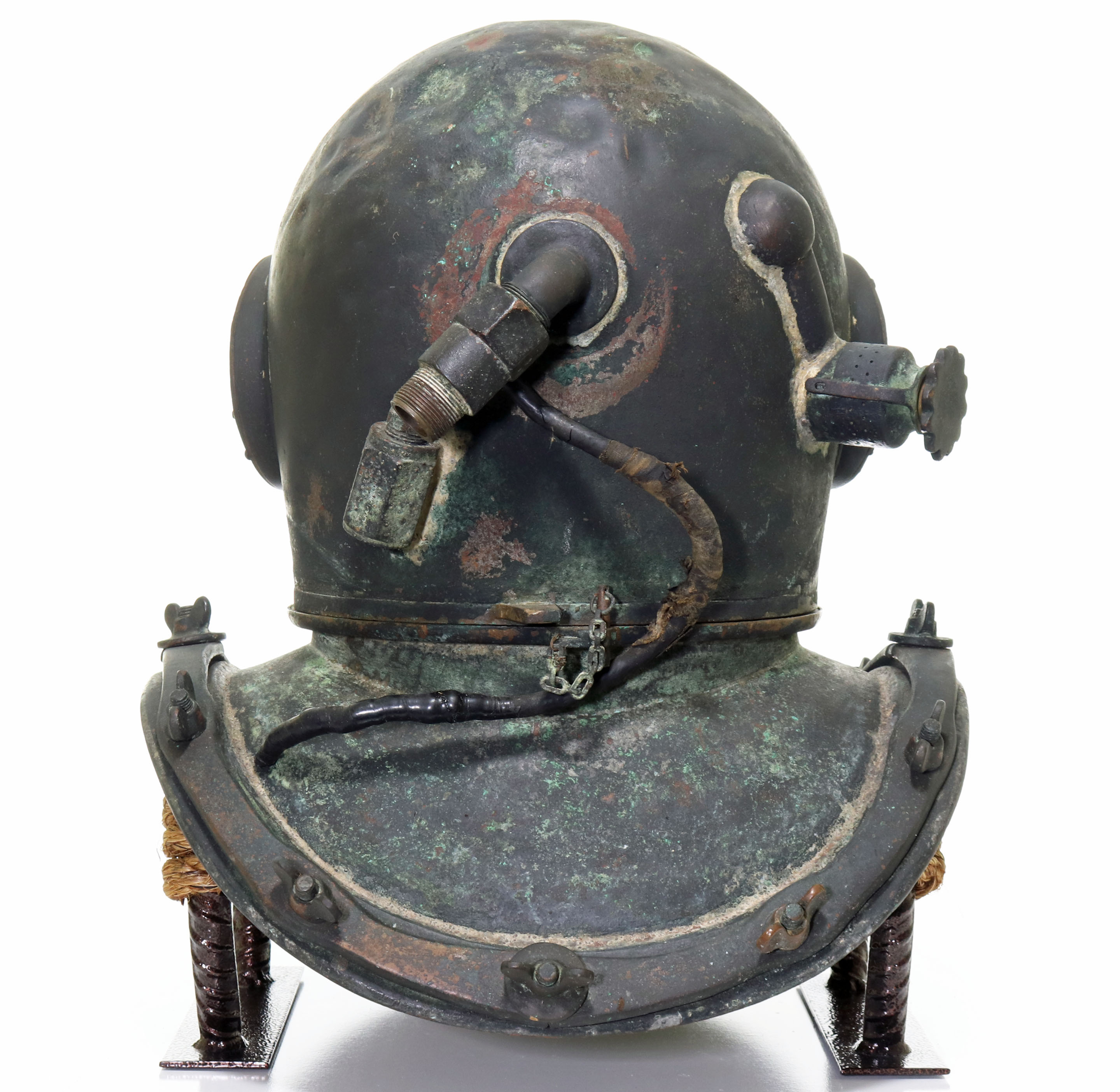 All diving helmets in this auction will be accompanied by a certificate of authenticity from Nations Attic. The certificate will have a unique number that will match the number on a tamperproof hologram decal placed inside the helmet. This information will be kept on permanent file at Nations Attic and help ensure the provenance of the helmet and authenticity.